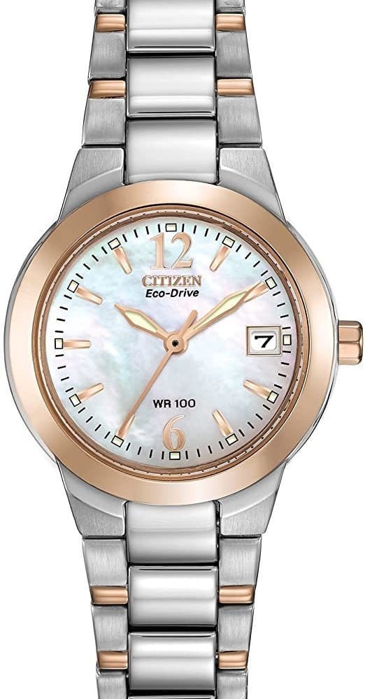 Powered by light, any light, Citizen’s innovative Eco-Drive technology harnesses the power of both natural and artificial light, converting it into energy to keep your watch running indefinitely. This watch never needs a battery, making it an environmentally friendly and hassle-free choice. Indulge in the perfect blend of luxury and practicality with the Citizen Eco-Drive Mother of Pearl Watch EW1676-52D—a statement piece that doesn’t compromise on performance.