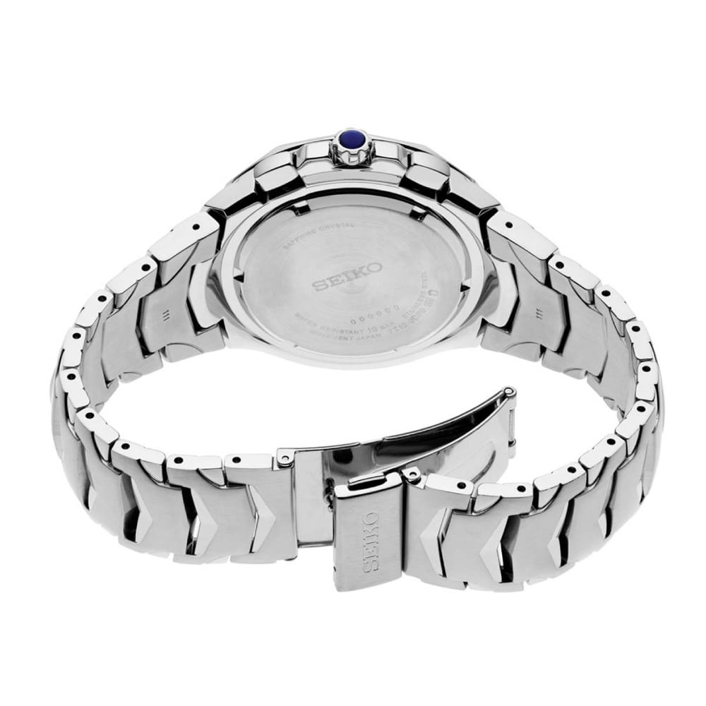 The watch is powered by Seiko’s 7T21 in-house quartz movement, complete with a 5 year battery. A date window is located between the 4 and 5:00 positions.