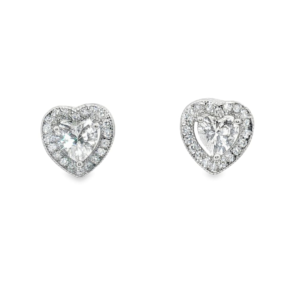 Elevate your style with these exquisite heart-shaped earrings, featuring a sophisticated micro pave design. Crafted from .925 silver, each earring showcases two radiant heart-cut cubic zirconia stones and intricately placed round side stones that catch the light beautifully. Perfectly designed for women, these stunning earrings bring elegance and sparkle to any occasion.
