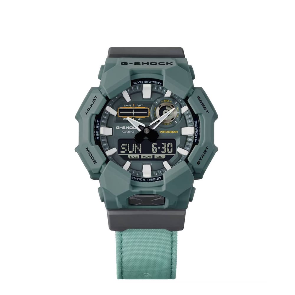Experience the perfect blend of style and functionality with the Casio G-Shock GA010CE-2A. This impressive men’s watch features a vibrant teal case crafted from durable resin, ensuring longevity and a bold aesthetic. The 51.90mm case size offers a prominent display, while the cloth band made from CORDURA®re/cor™ provides comfort and support during everyday activities.