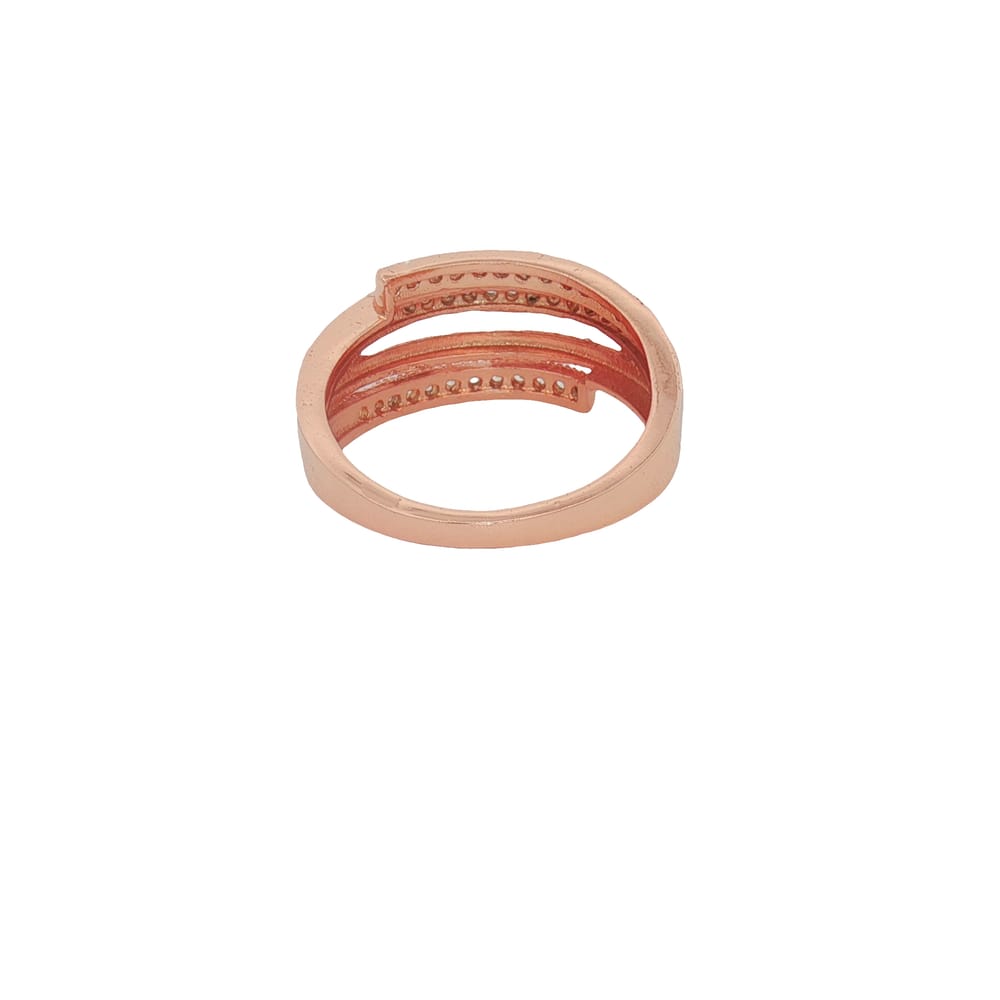 This exquisite crossover ring showcases a beautifully plated rose gold finish on high-quality .925 silver, designed specifically for women. Adorned with sparkling cubic zirconia stones, it radiates elegance and adds a sophisticated touch to any attire. With a comfortable size 7 fit, it’s perfect for everyday wear or special occasions.