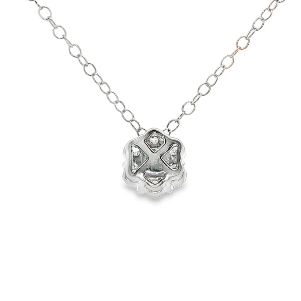 This exquisite diamond pendant features a brilliant round diamond with a clarity rating of VS1 and a dazzling D color. Crafted from high-quality .925 silver, this piece is designed to add a touch of elegance to any outfit. With a total weight of 1.54 grams and an 18-inch length, it is the perfect accessory for women who appreciate fine jewelry.
