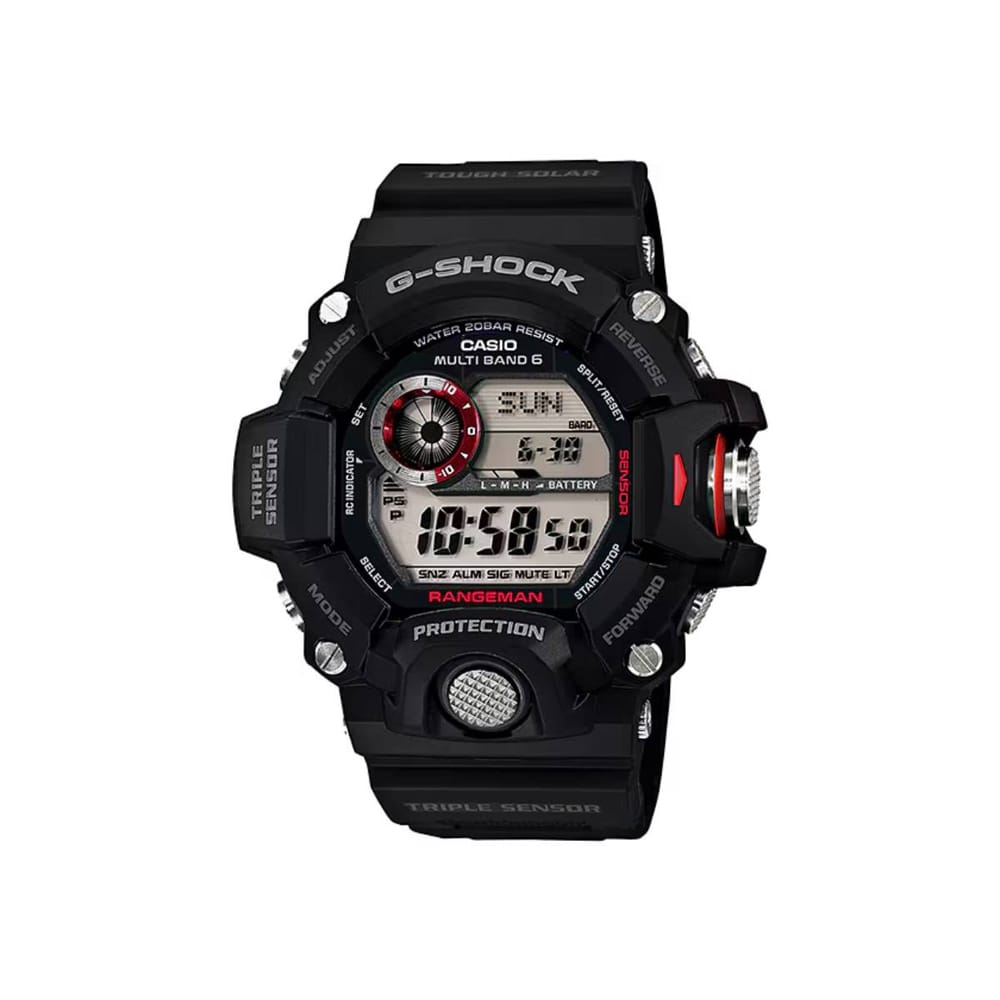 Discover the ultimate in durability and functionality with the G-Shock Rangeman GW-9400-1CR. This advanced timepiece features a 55mm case size and is equipped with a solar movement, ensuring it performs flawlessly in demanding environments. Designed for the adventurous man, it offers essential sensors for altitude, pressure, and temperature, making it your reliable companion for any outdoor activity.