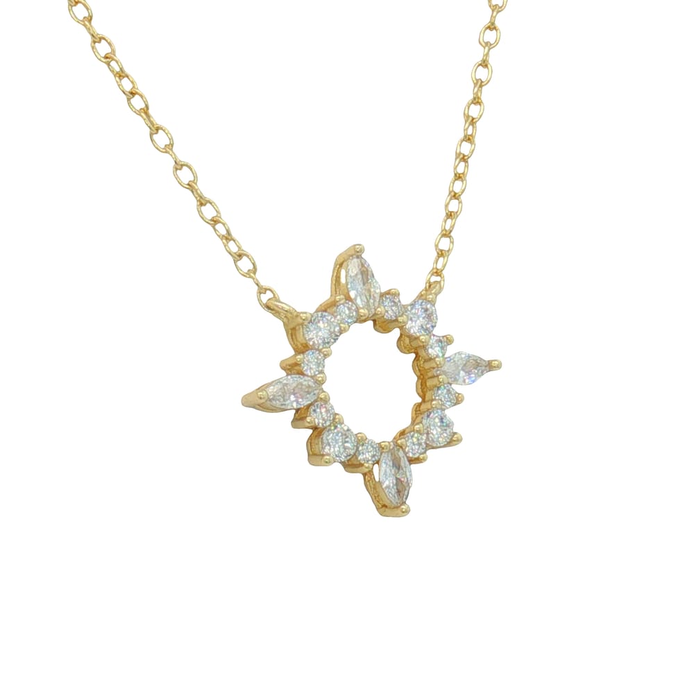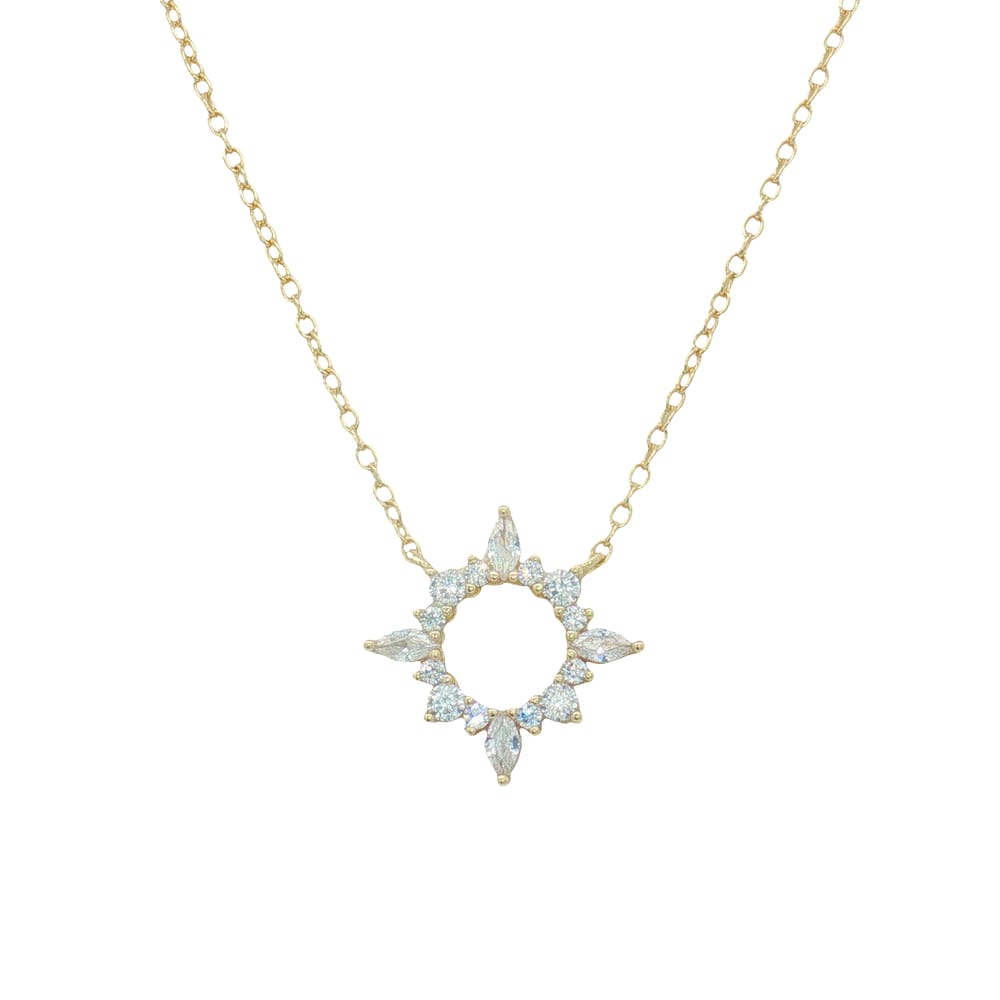 Embrace a touch of elegance with this exquisite gold-plated necklace designed uniquely for women. Crafted from durable stainless steel, it features an eye-catching open sun design that radiates charm and warmth. The 16-inch length, complemented by a 2-inch extender, ensures a perfect fit that enhances any outfit beautifully.
