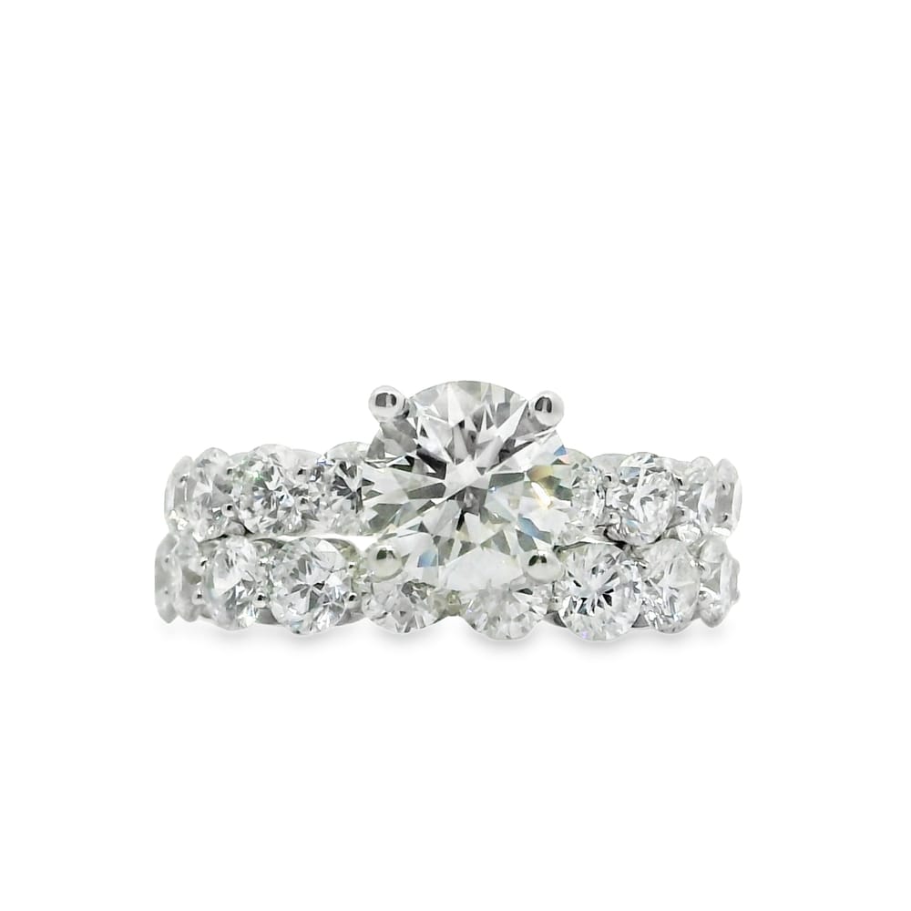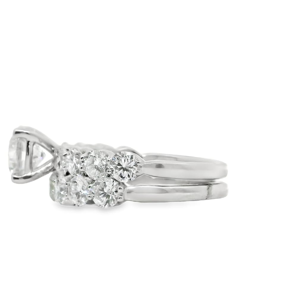 This exquisite engagement ring features a 1.51-carat lab-grown round diamond, showcasing exceptional clarity and a stunning F color grade. Crafted from premium 14K white gold, this piece is designed for women who appreciate elegance and modernity. Accompanied by a matching wedding band with 9 lab-grown diamonds.