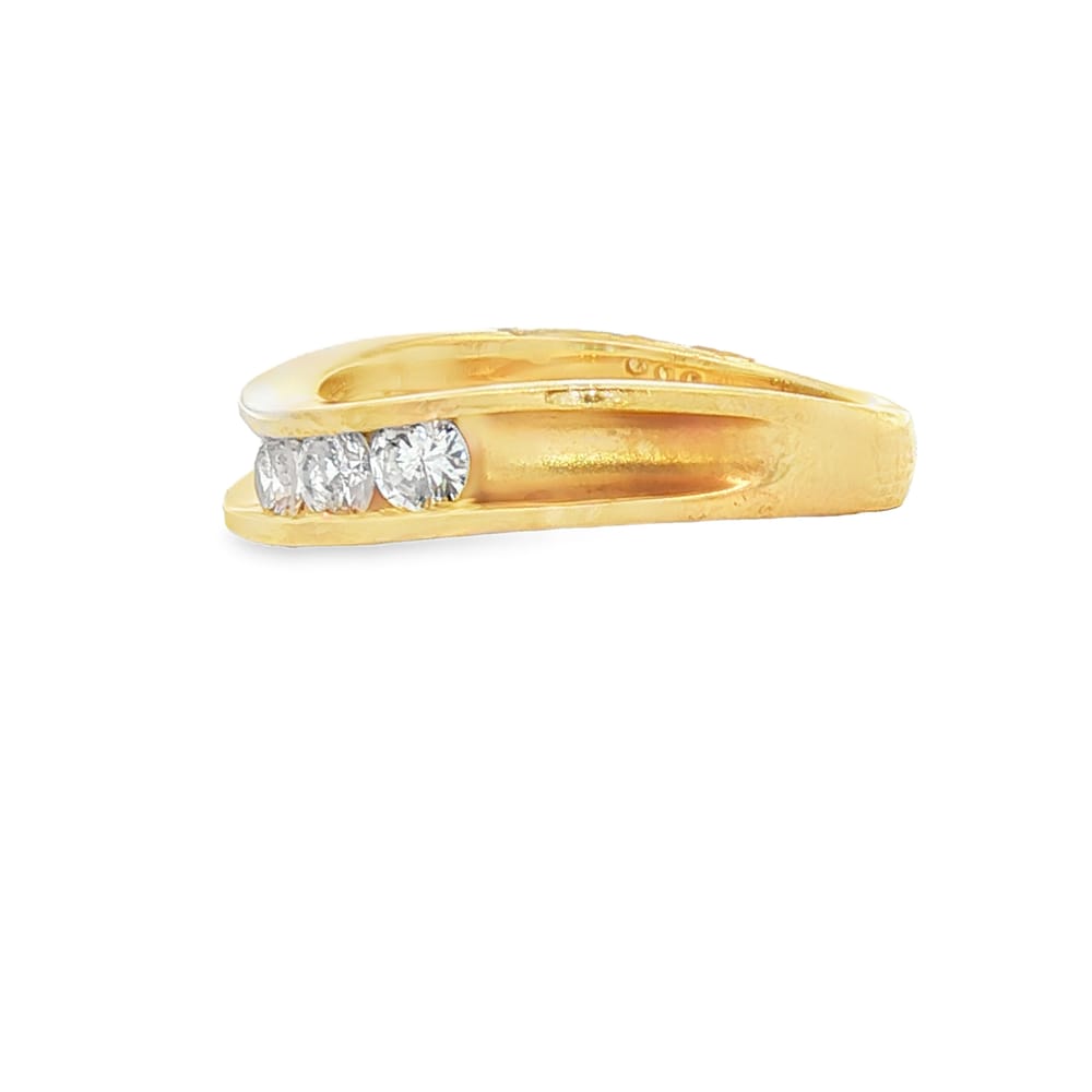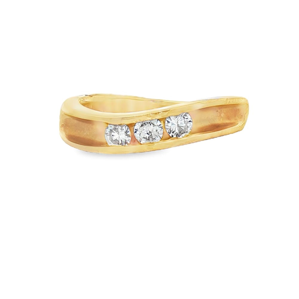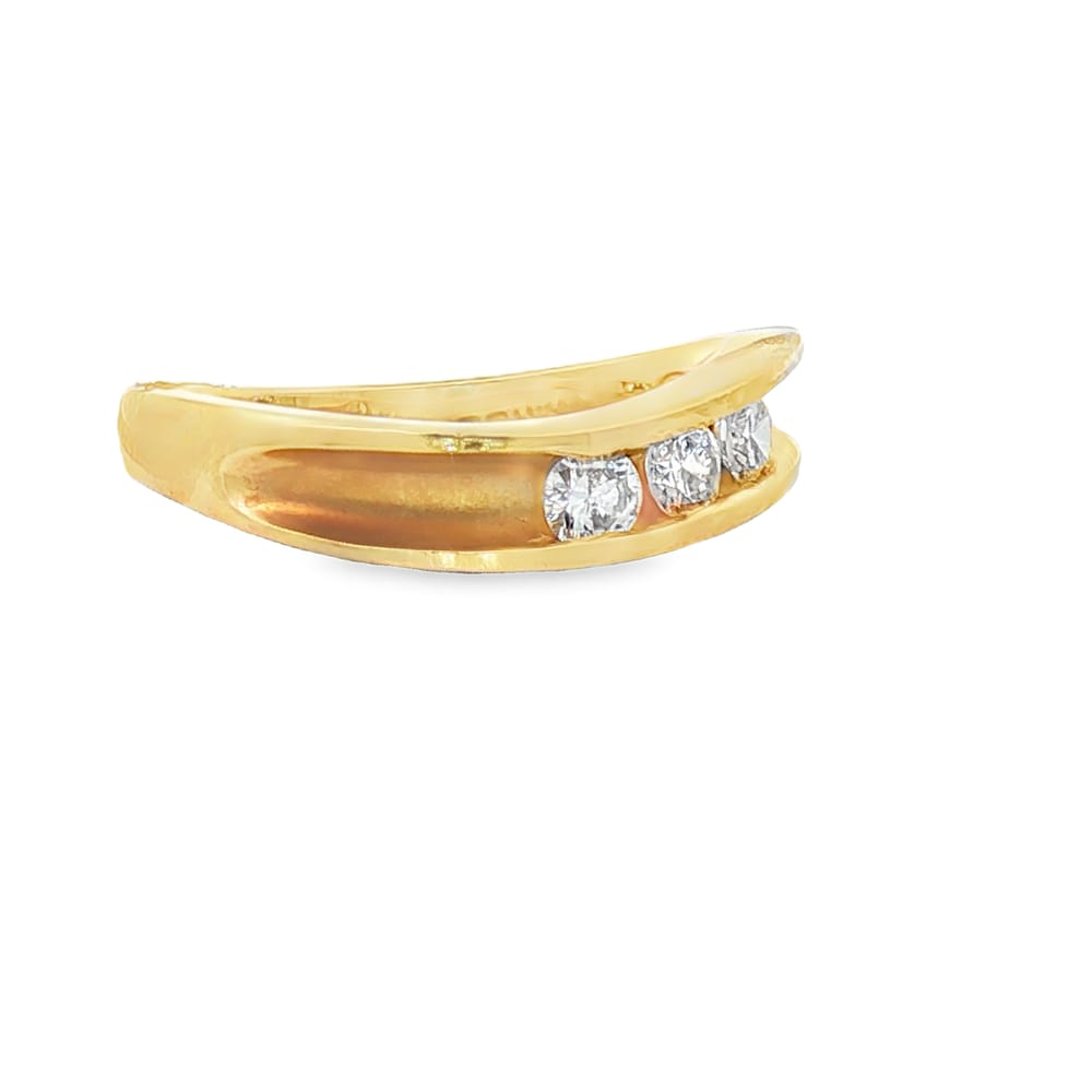 This exquisite wedding band features three brilliant diamonds elegantly set in premium 14K gold, weighing 4.5 grams. Designed for women, it offers a timeless appeal, perfect for commemorating your special moments.