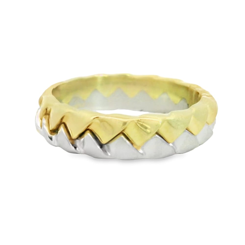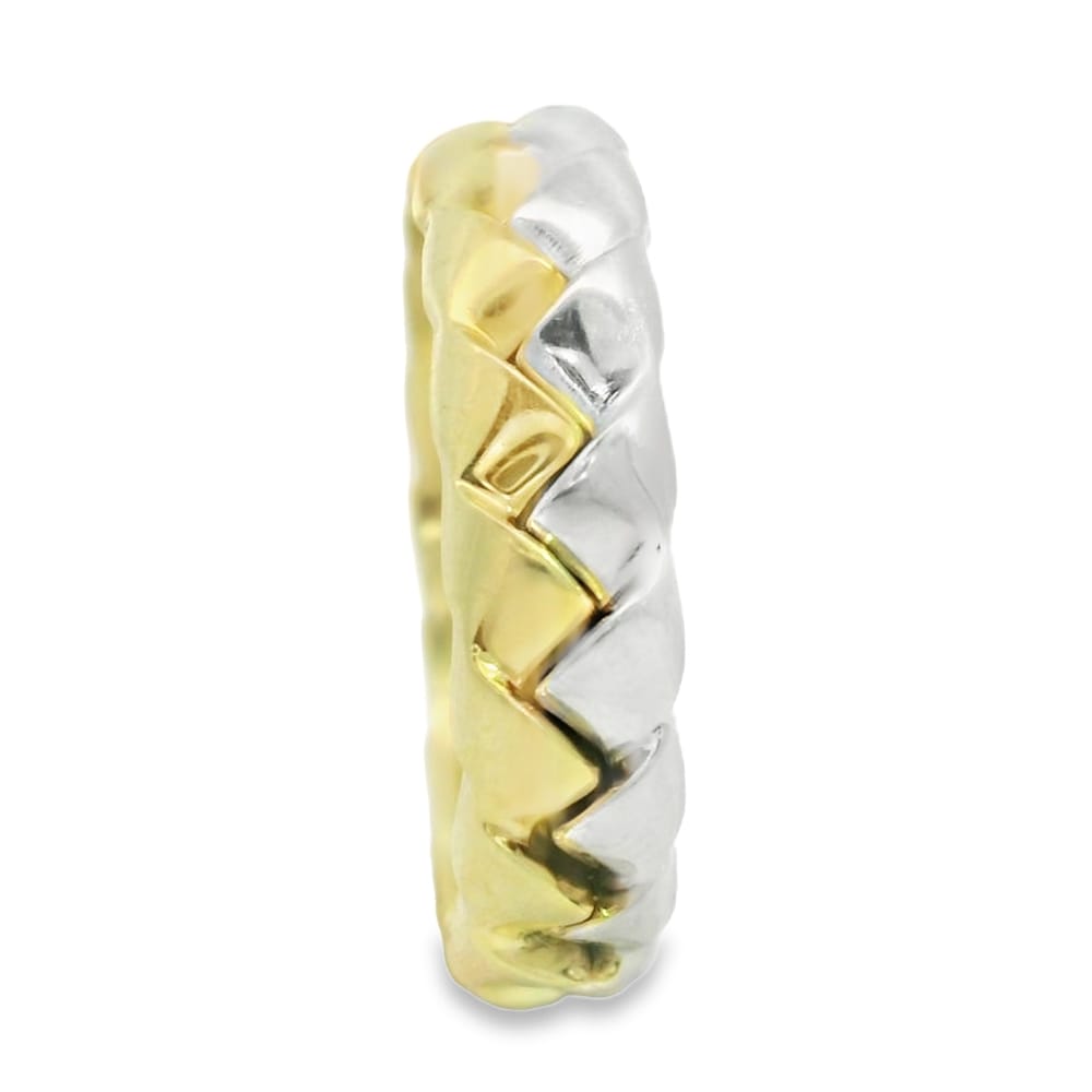 This exquisite 18K gold & platinum wedding band features a unique braided design, perfect for the modern bride. Ideal for expressing love and commitment, this piece effortlessly combines elegance with durability.