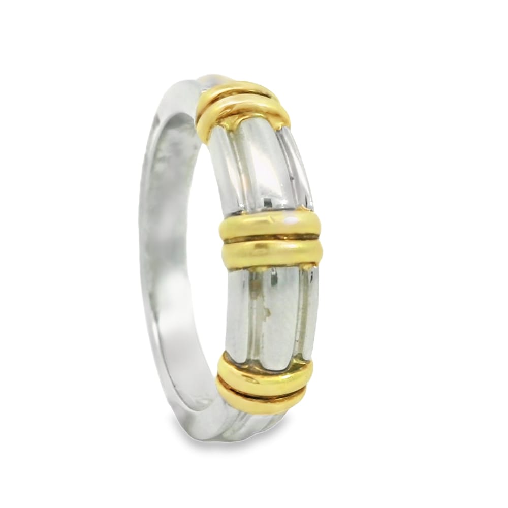 Ladies 18KT Yellow Gold & Platinum Fancy Tapered Wedding Band – 13.6g