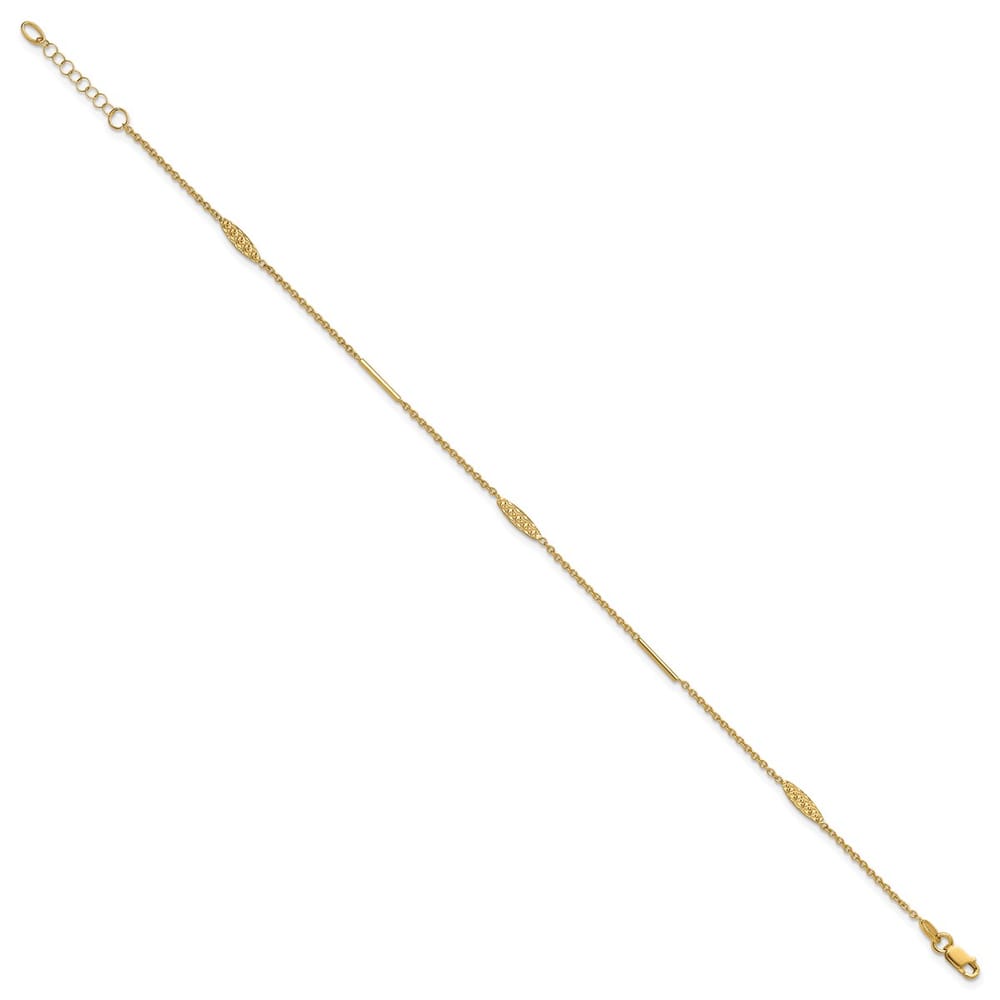 Leslie’s 14K Bar and Textured Oval 9 inch Plus 1 inch Extender – Total 10 inch Anklet