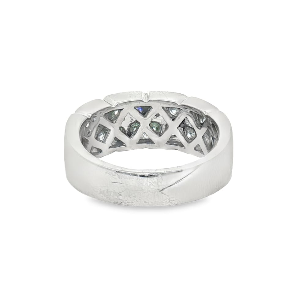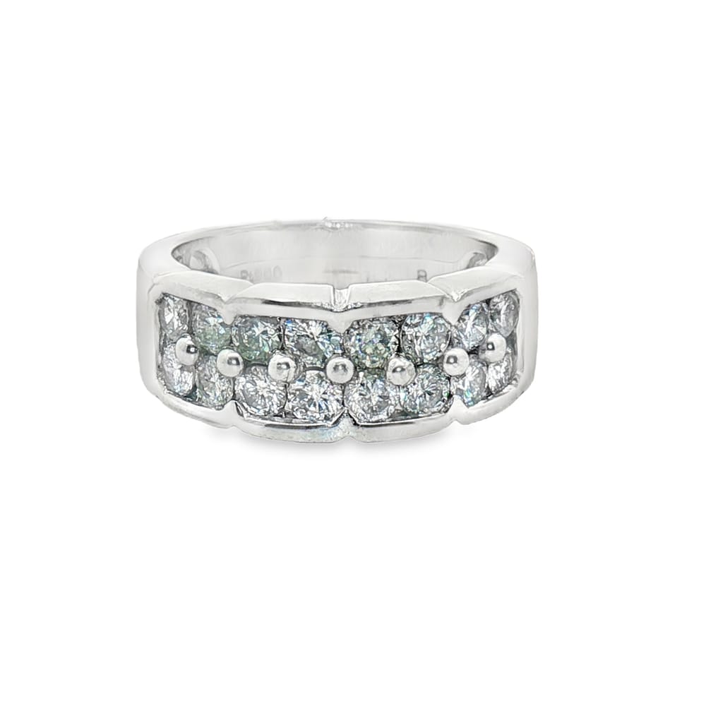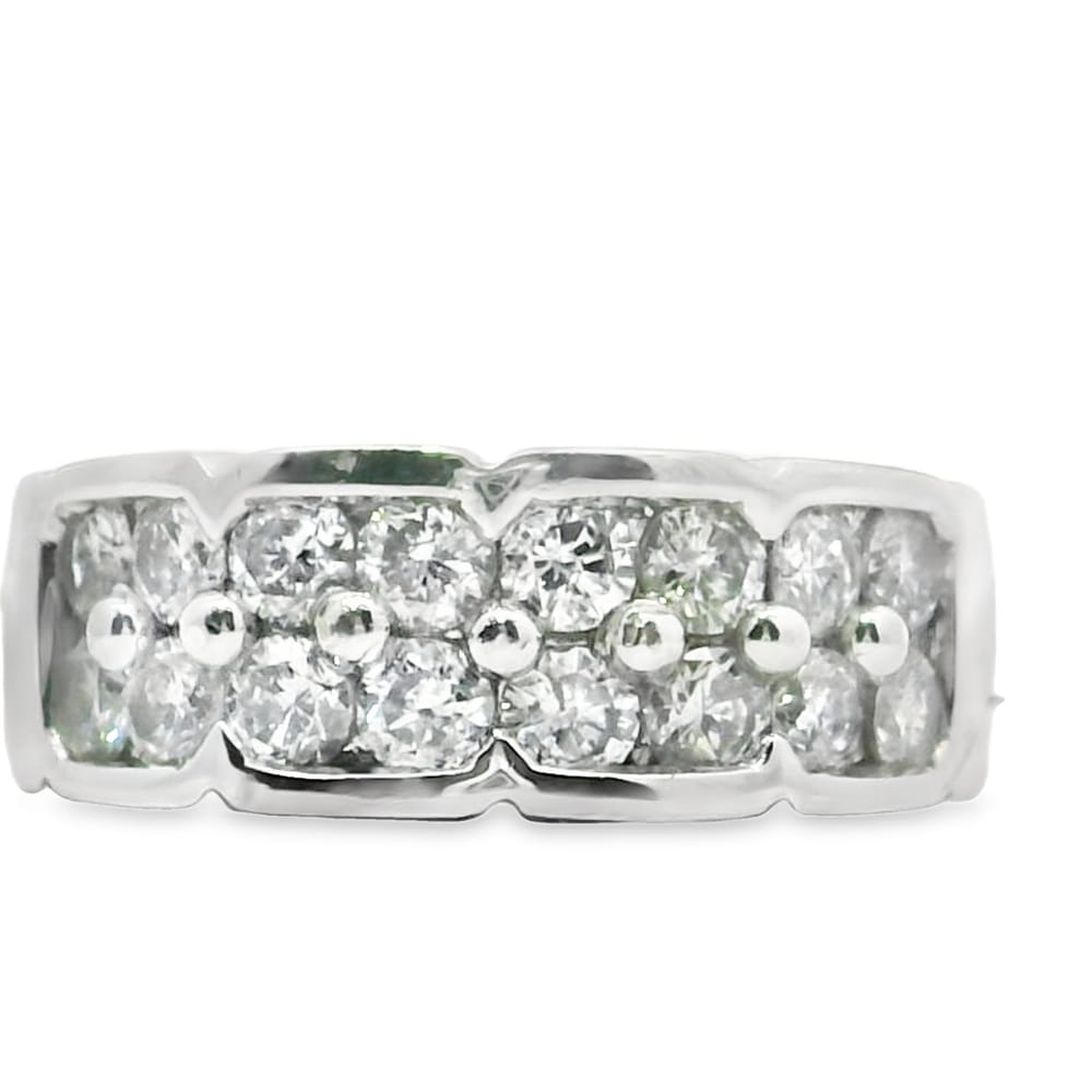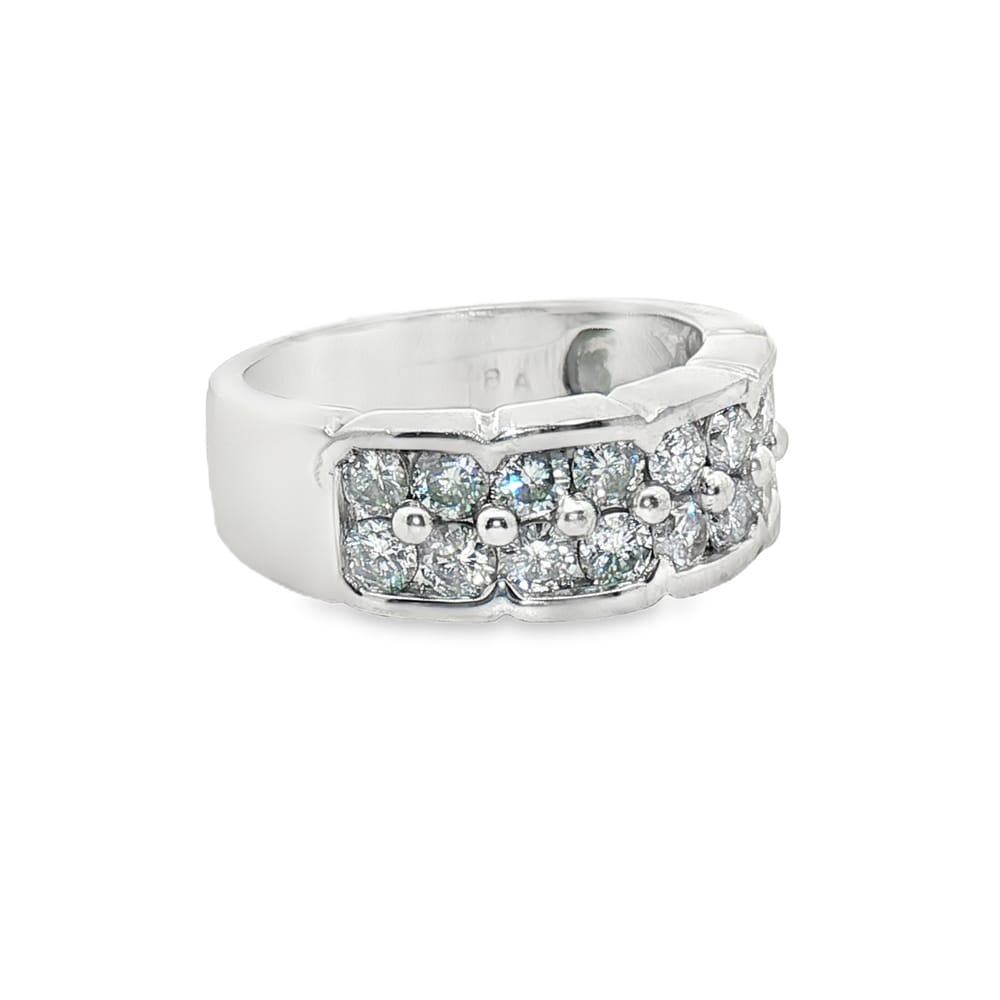 This exquisite wedding band features a dazzling double row of diamonds totaling 1.49 carats, elegantly set in premium platinum. With a substantial weight of 10.7 grams, it offers both luxury and durability, making it a perfect symbol of enduring love.