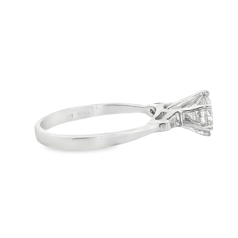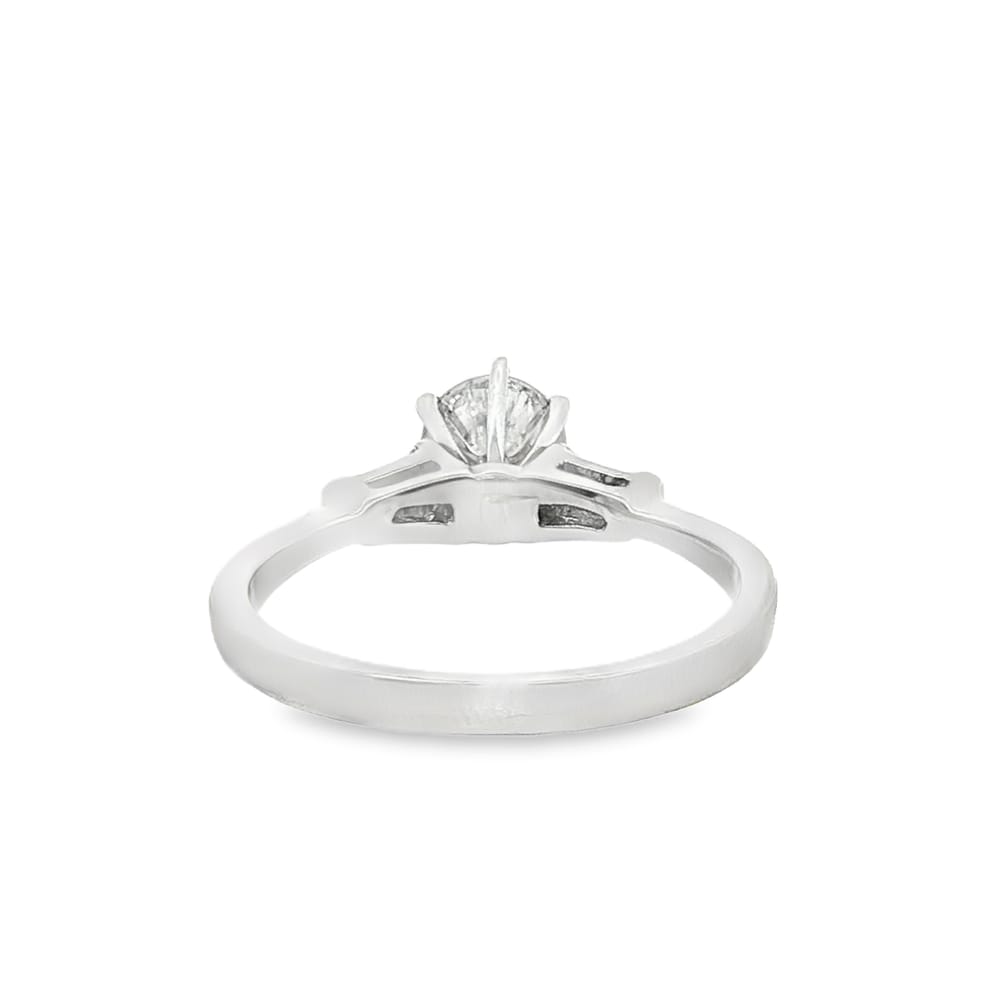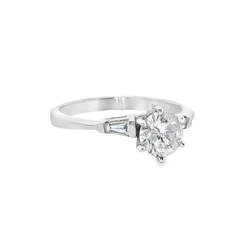 Celebrate your love story with this exquisite platinum semi-mount engagement ring designed for women. Featuring a captivating round center stone surrounded by elegant baguette side stones, this piece offers a perfect blend of tradition and contemporary style. With a gross weight of 4.52 grams, this ring is both luxurious and durable, making it an exceptional choice for your special moment.