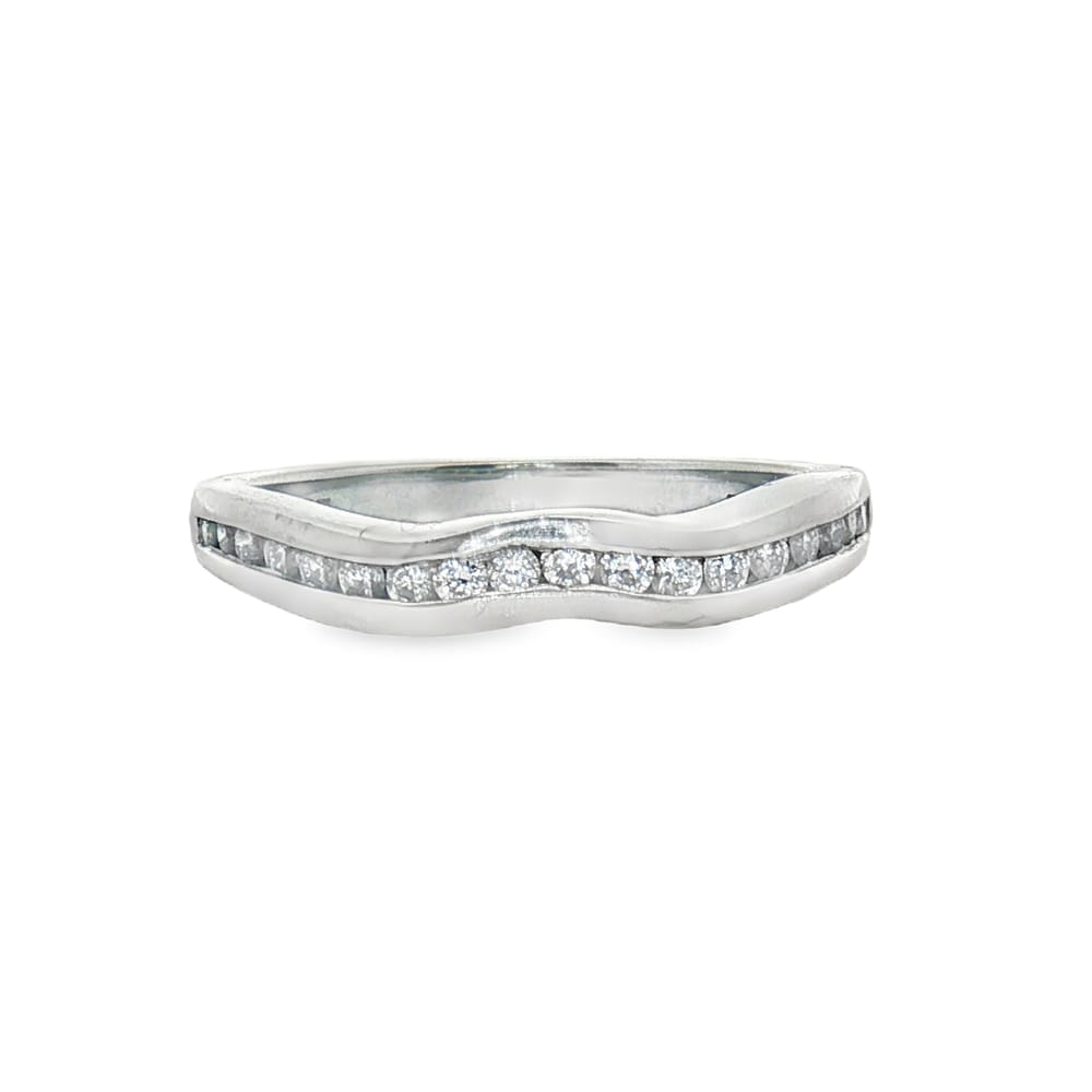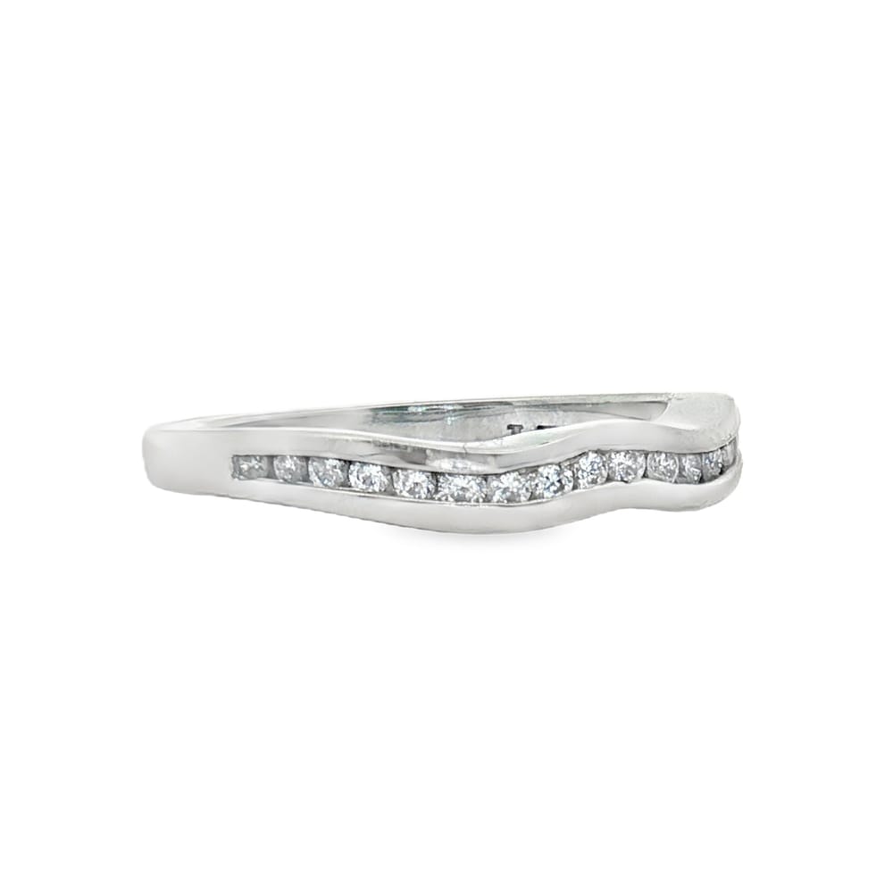 Celebrate your love with this exquisite women’s wedding band, meticulously crafted from luxurious platinum. Adorned with 19 dazzling round diamonds totaling 0.25 carats, this piece radiates elegance and sophistication. Perfect for symbolizing an everlasting bond, this ring is a timeless addition to any jewelry collection.