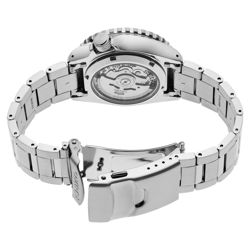 Discover the perfect blend of style and functionality with the Seiko 5 Sports watch. This impressive timepiece features a navy blue uni-directional bezel and a captivating blue sunray finish dial, enhanced by luminous hands and markers for easy readability.