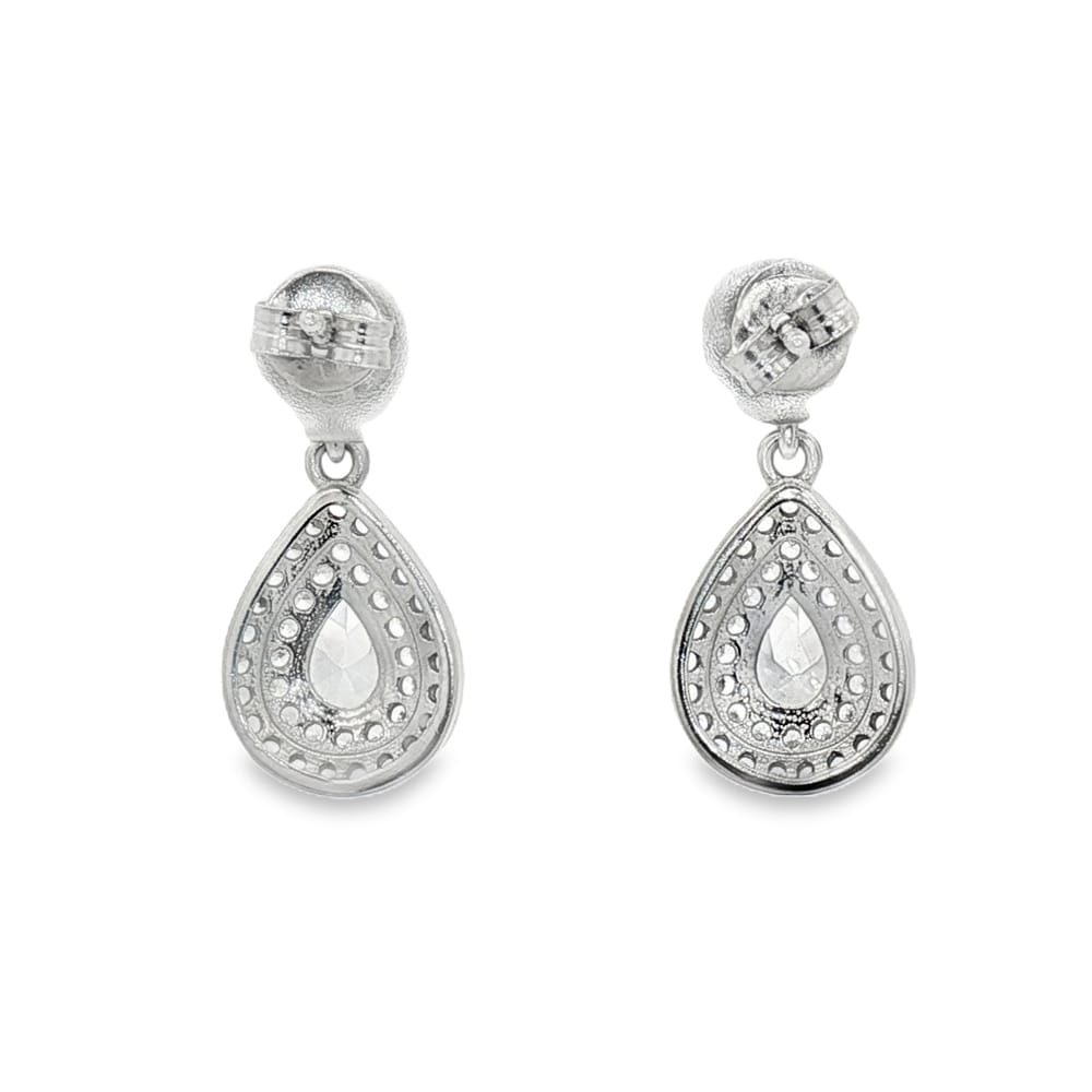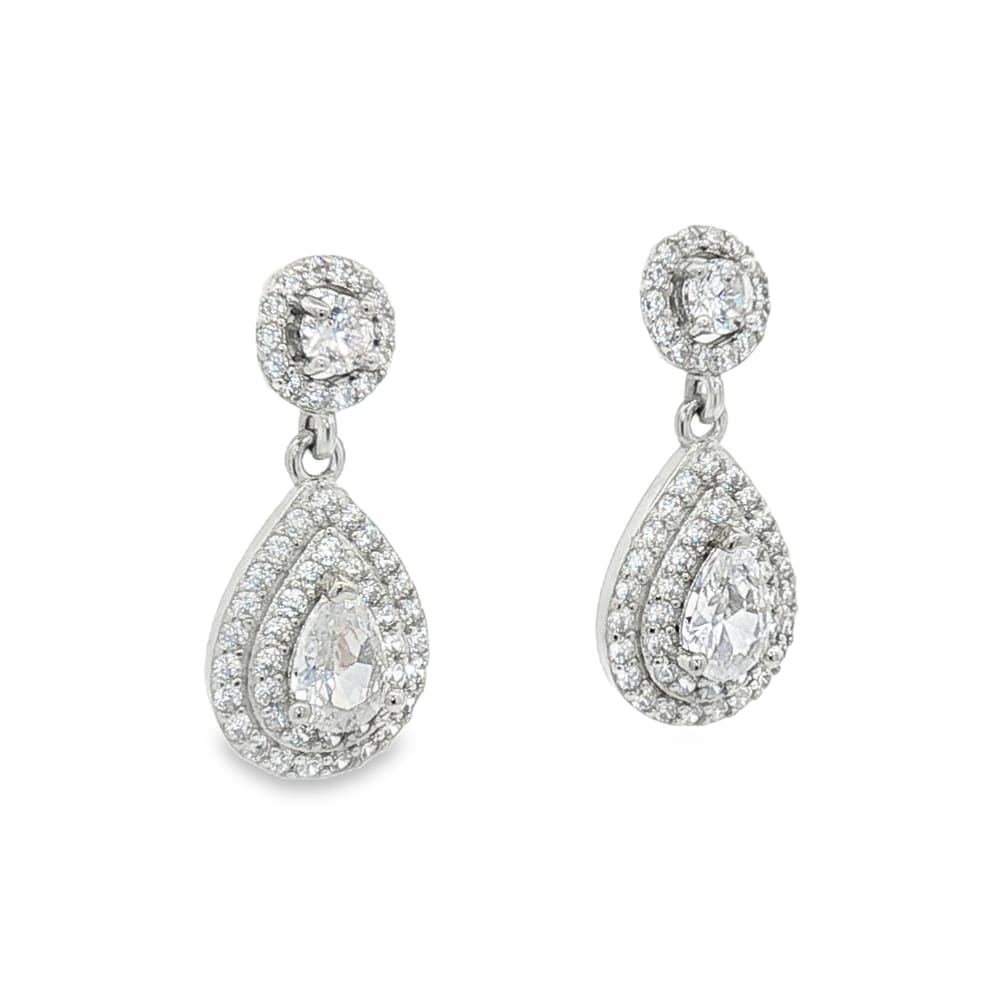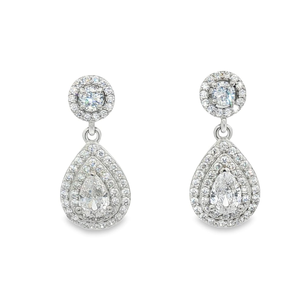 Elevate your style with these eye-catching pear and round-shaped CZ halo door knocker earrings. Crafted from high-quality .925 silver, they are adorned with dazzling cubic zirconia stones that radiate elegance. These earrings are the perfect accessory for women seeking to make a statement or add a touch of glamour to their ensemble.