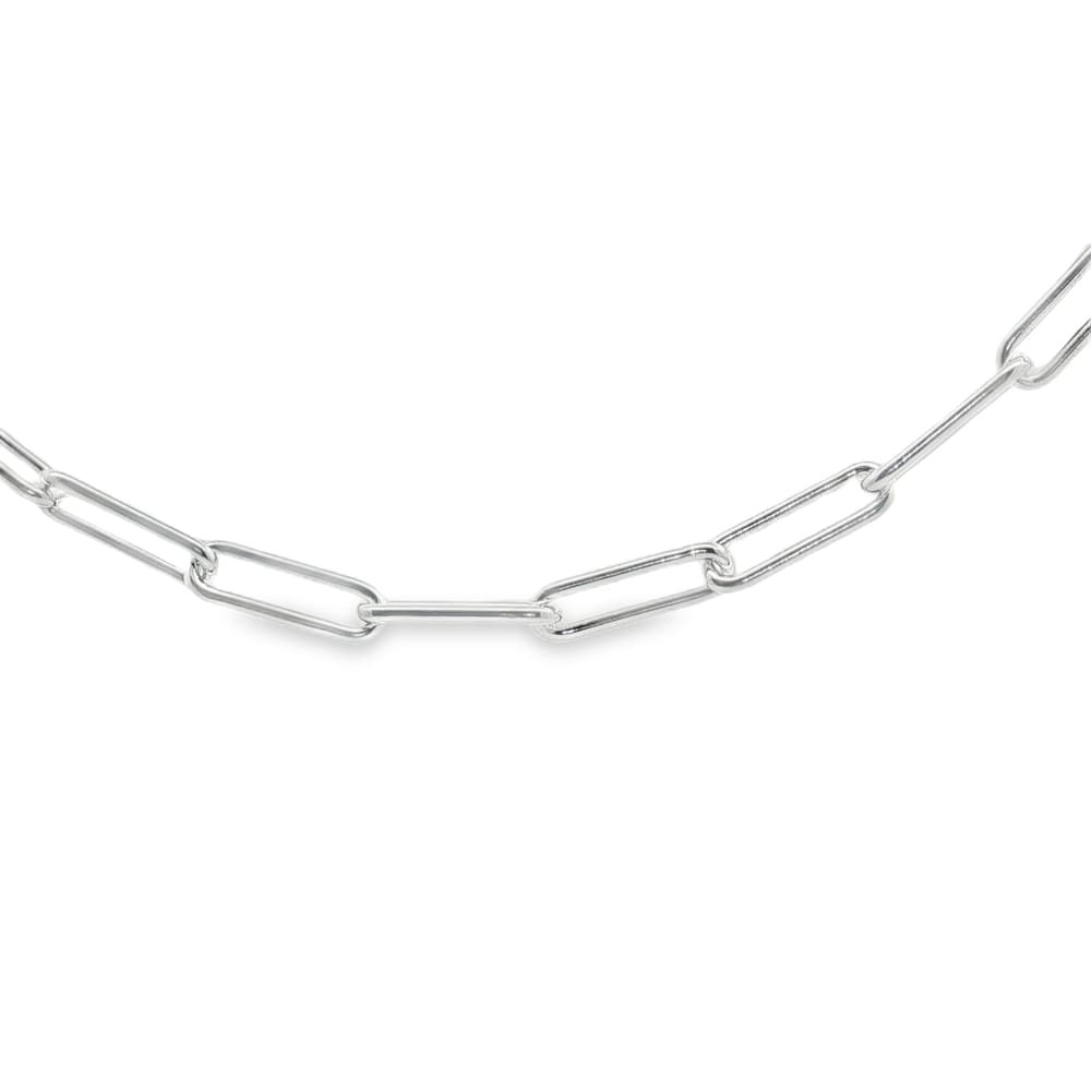This elegant chain necklace features a sleek paperclip design crafted from .925 silver, weighing 13.70 grams. Measuring 18 inches in length, it’s perfect for layering or wearing alone for a chic, understated look. Designed to complement any outfit, this unisex piece adds a modern touch to your jewelry collection.
