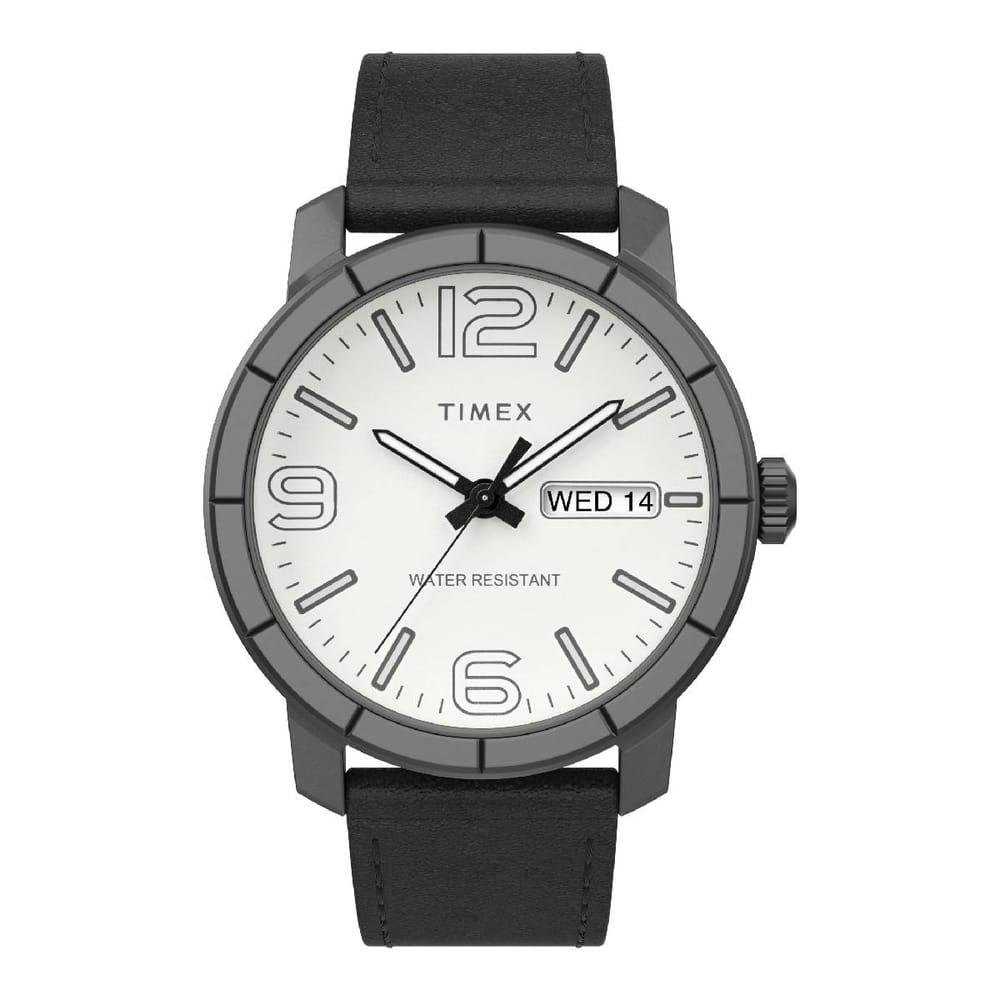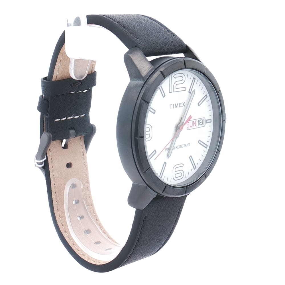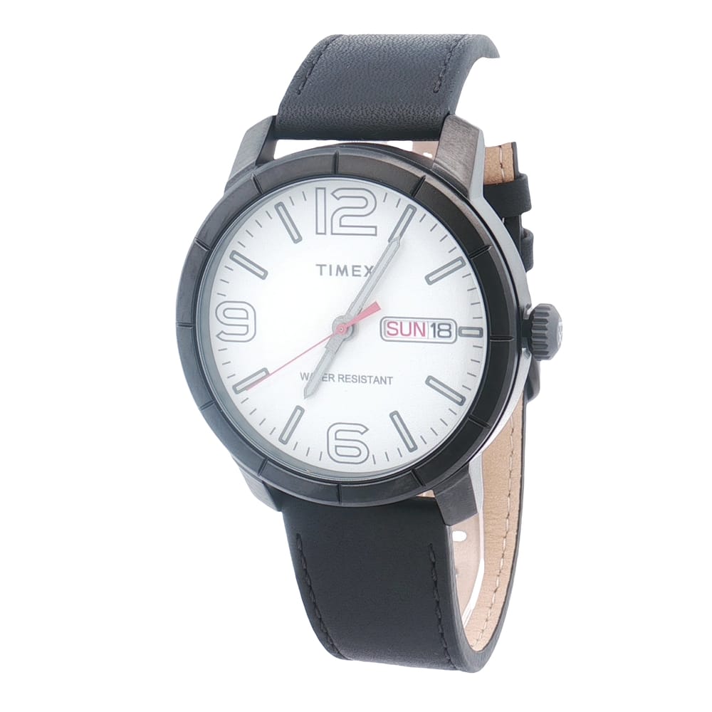 Timex Men’s Quartz Leather Strap Watch – TW2U30400, 44mm, White Dial, Black Brass Case