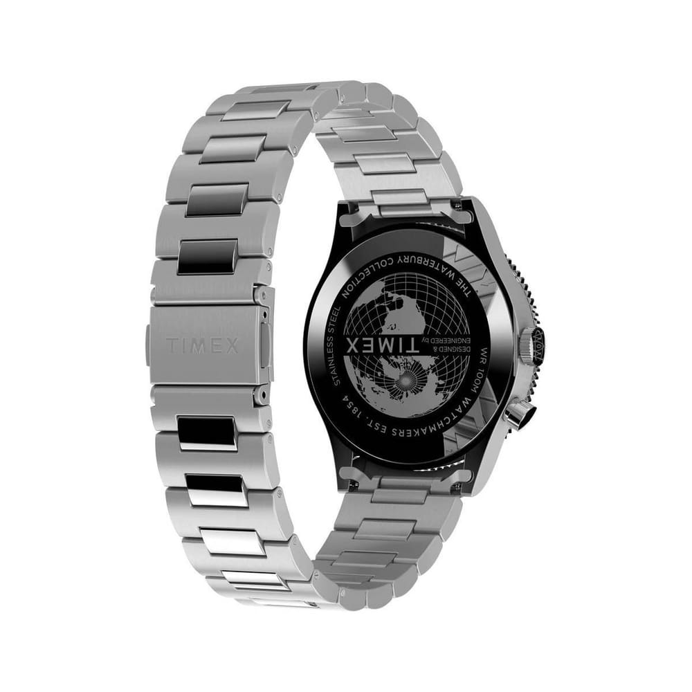 With our Waterbury Traditional GMT, we’ve blended our traditional craftsmanship with the practicality of a GMT movement. The watch can track an additional time zone thanks to a fourth hand on the black dial, an immensely practical feature for world travelers and global connections. With a 39mm stainless-steel case profile, rotating top ring, handy date feature, and stainless steel bracelet, the Waterbury Traditional GMT is the wristwatch to keep you on time, no matter where you’re touching down tomorrow.