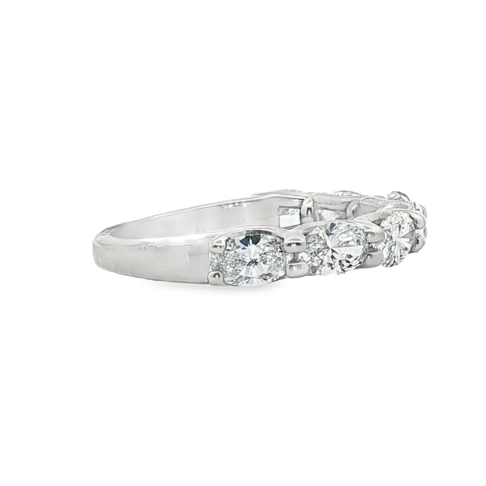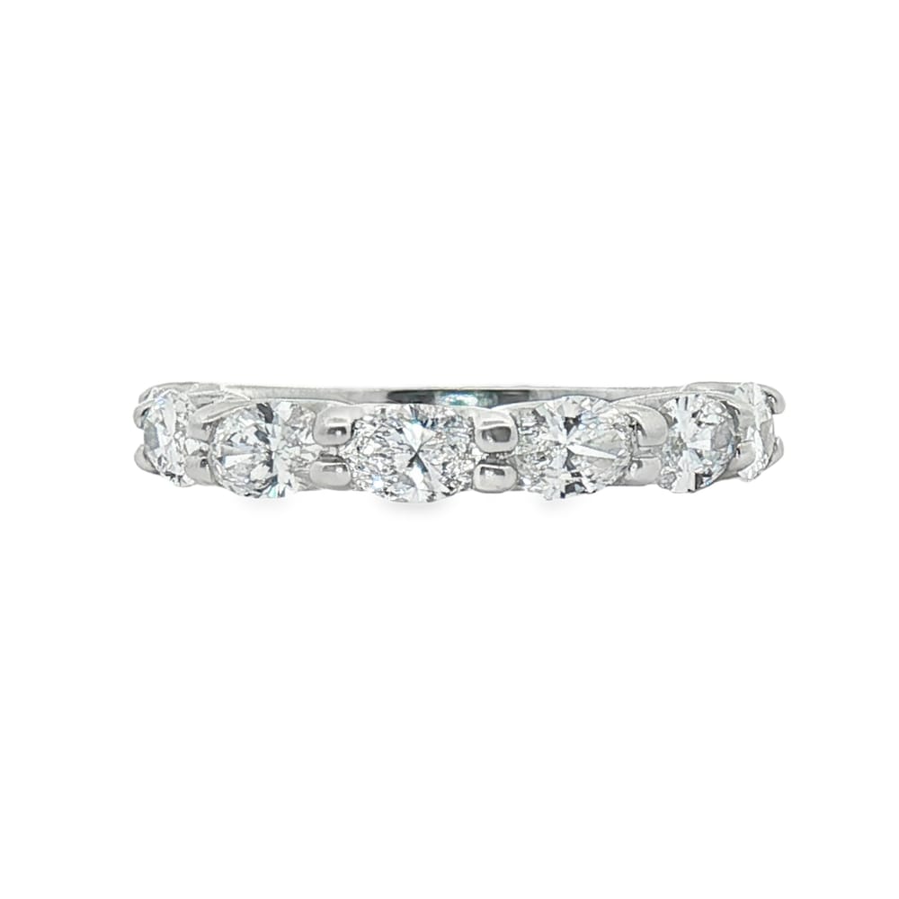 Elevate your elegance with this exquisite women’s wedding band, crafted from high-quality platinum and adorned with seven dazzling oval diamonds, totaling 1.45 carats. Each diamond is meticulously set to ensure maximum brilliance, making it the perfect symbol of love and commitment. With a gross weight of 4.75 grams, this luxurious piece is both durable and timeless, ideal for everyday wear or special occasions.