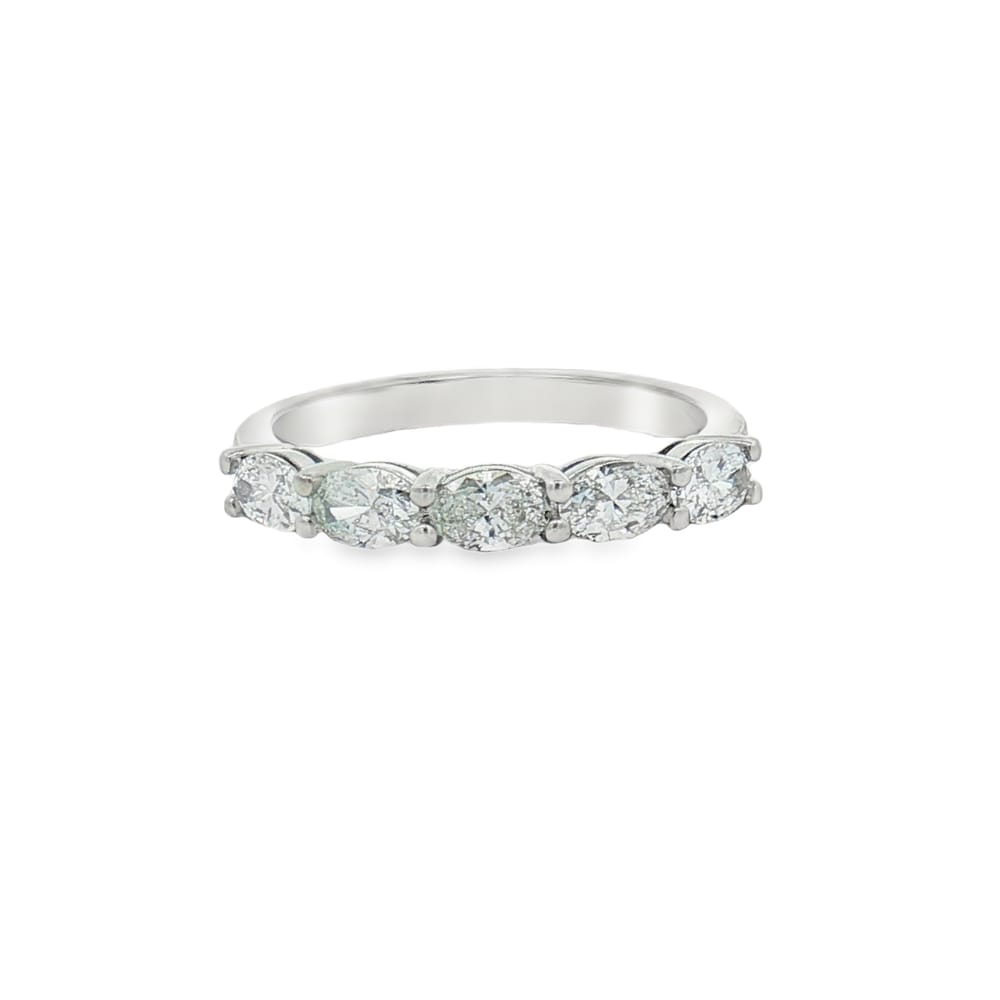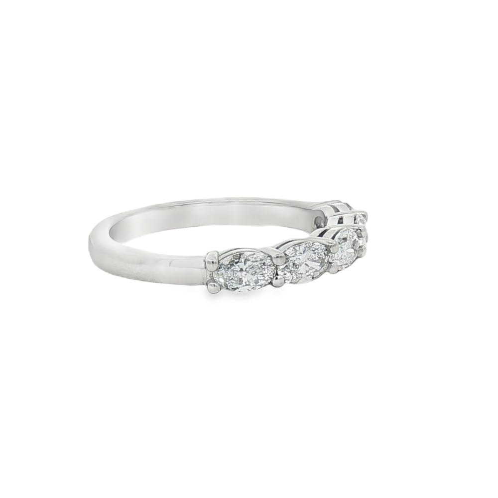 This exquisite women’s wedding band is crafted from lustrous platinum, ensuring durability and elegance. Adorned with five mesmerizing oval diamonds, totaling 0.91 carats, this ring radiates sophistication and timeless beauty. Celebrate your love story with a piece that embodies both grace and strength, perfect for the special moments in life.
