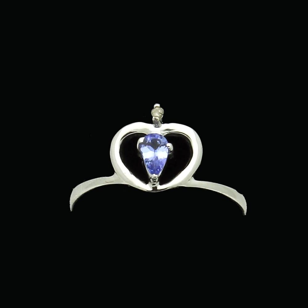 Embrace the enchanting allure of our Sterling Silver Heart-Shaped Ring, a symbol of elegance and romance. This exquisite ring, available in size 7, features a captivating heart-shaped tanzanite gemstone that dazzles with its mesmerizing blue-violet hue. Nestled within the sterling silver setting, the tanzanite radiates with a unique brilliance that is both timeless and contemporary. Adding a touch of sparkle, a delicate .02ct diamond is meticulously set to enhance the ring’s overall charm and sophistication. Whether as a heartfelt gift or a personal indulgence, this ring effortlessly combines the beauty of tanzanite and the elegance of sterling silver, making it a perfect expression of love and luxury. Celebrate special moments or elevate your everyday style with this impeccably crafted piece, destined to be cherished forever.