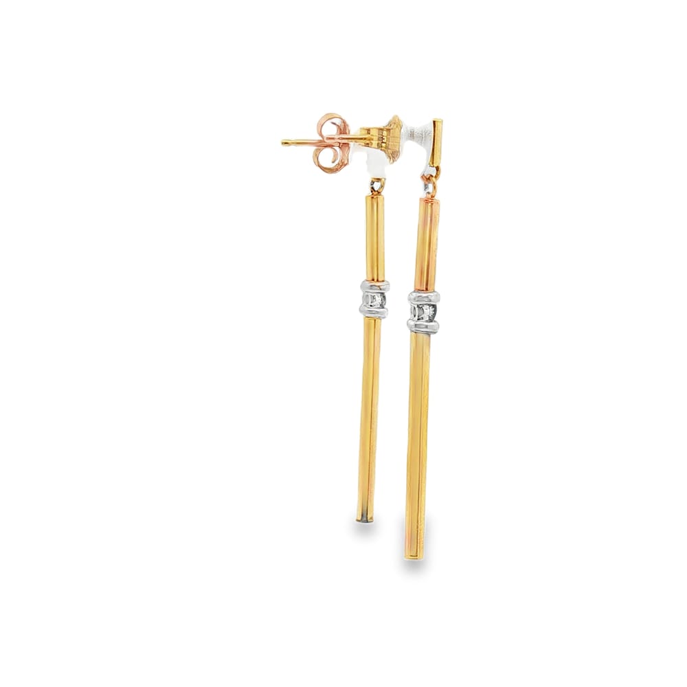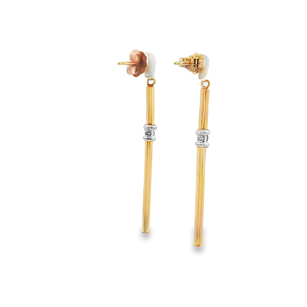 These elegant 14K gold earrings showcase a contemporary long tube design, enhanced with 0.03ct of sparkling diamonds. Perfect for any occasion, these earrings add a touch of sophistication and style to your outfit.
