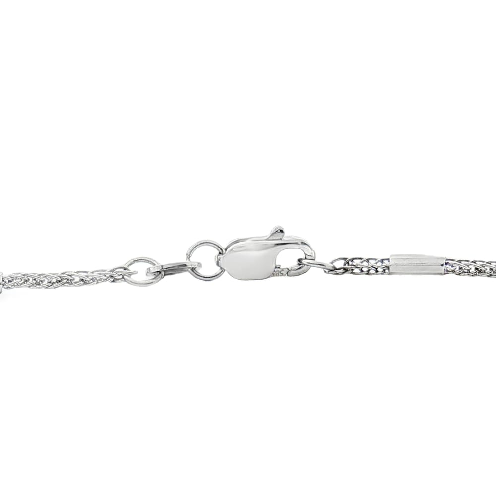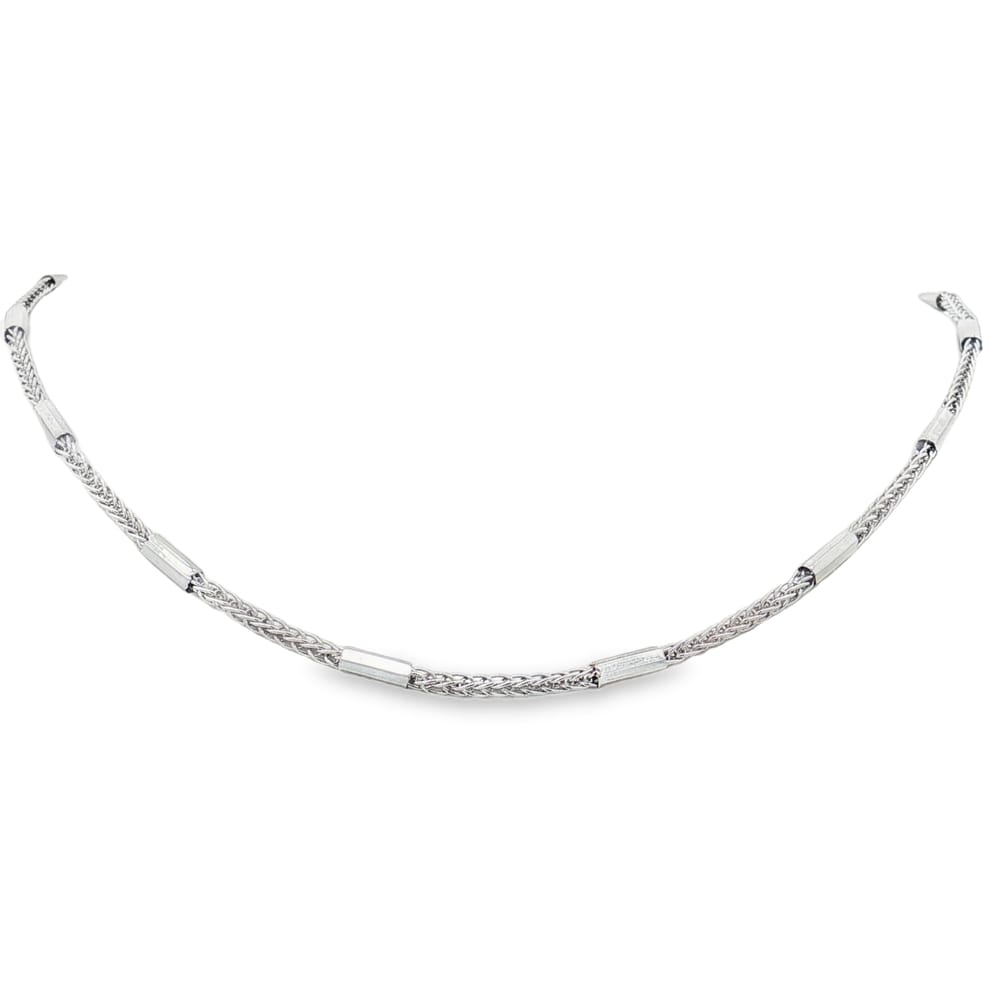 This exquisite 14K White Gold chain features a delicate 1.70mm rope design, perfect for elevating any outfit. With an adjustable length of 18 inches, it gracefully drapes around the neck, offering a luxurious touch. Weighing 3.71 grams, this piece combines elegance and durability, making it a must-have addition to your jewelry collection.