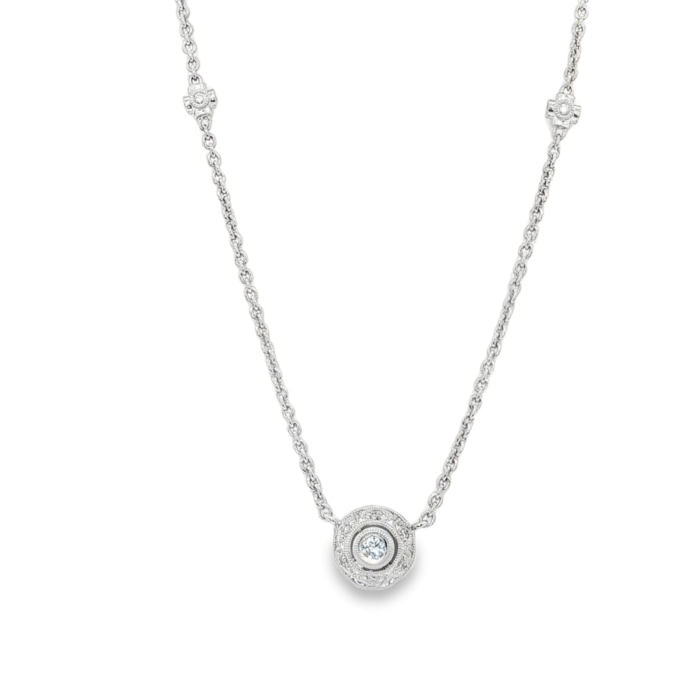 Elevate your jewelry collection with this exquisite 14K white gold diamond necklace, featuring a captivating round design. Adorned with dazzling natural diamonds totaling 0.25 carats, it elegantly accentuates your neckline and adds a touch of sophistication. Perfect for any occasion, this radiant piece is designed specifically for women who appreciate timeless elegance.