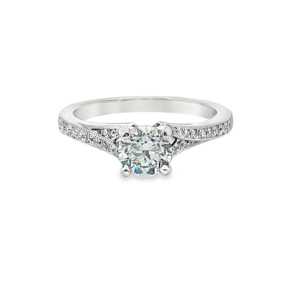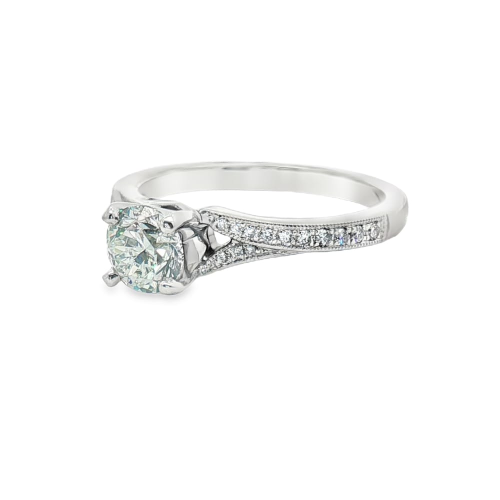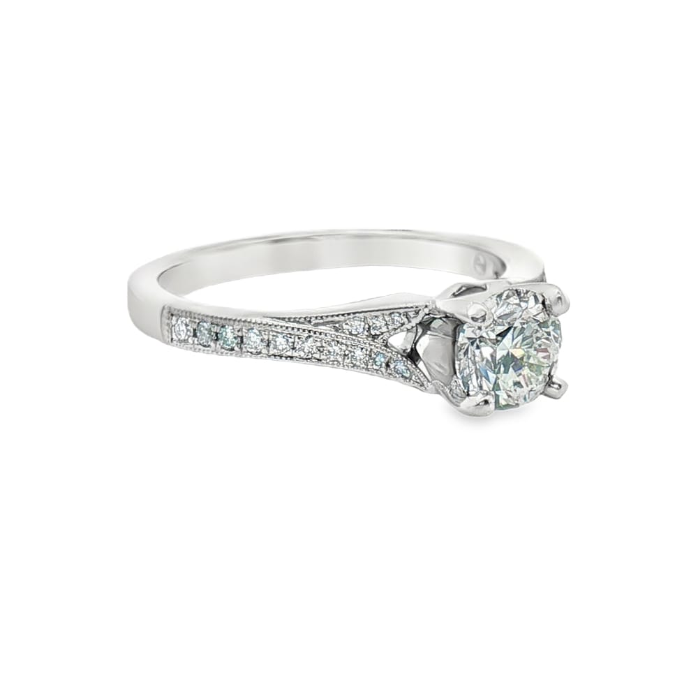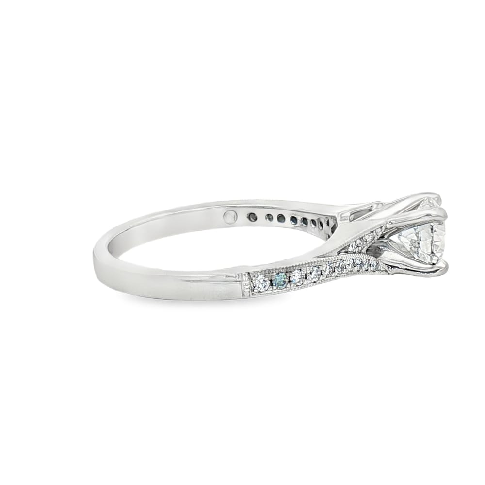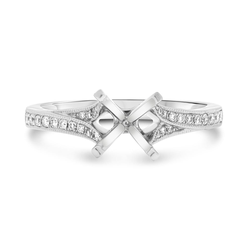 14K White Gold Engagement Semi-Mount Ring with 26 Round Natural Diamonds