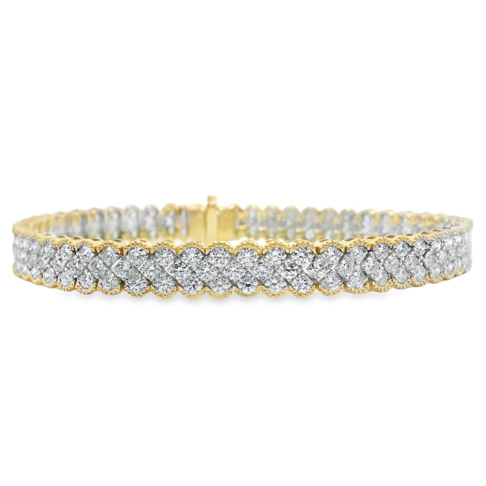 Elevate your style with this luxurious 14K yellow gold bracelet, featuring a breathtaking total of 7.3 carats of sparkling diamonds. Perfect for special occasions or adding a touch of elegance to your everyday look, this exquisite piece is a must-have for any jewelry collection.