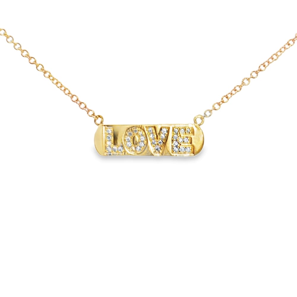 This exquisite necklace features a charming “LOVE” plate adorned with sparkling diamonds, making it a perfect gift for someone special. Crafted with high-quality 14K yellow gold, it measures 18 inches and weighs 2.10 grams, blending elegance with a heartfelt message.