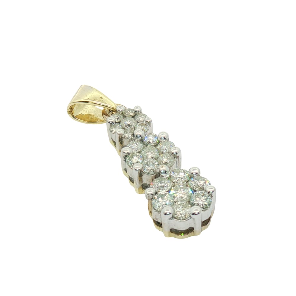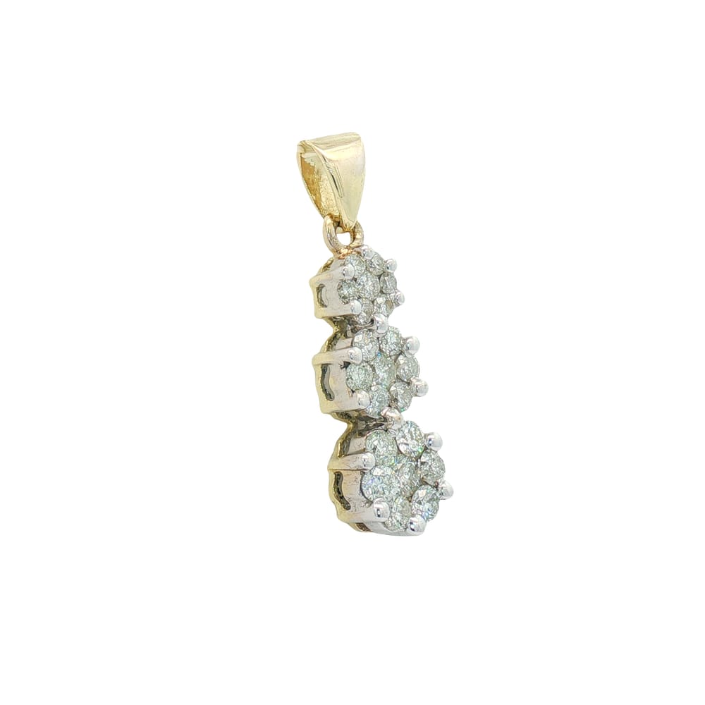 This exquisite flower-style pendant is crafted from premium 14K yellow gold and features a dazzling array of 21 round diamonds. Weighing a total of 3.07 grams, this piece radiates elegance while adding a touch of floral charm to any outfit. Perfect for special occasions or everyday wear, its 1-inch length makes it a versatile addition to your jewelry collection.