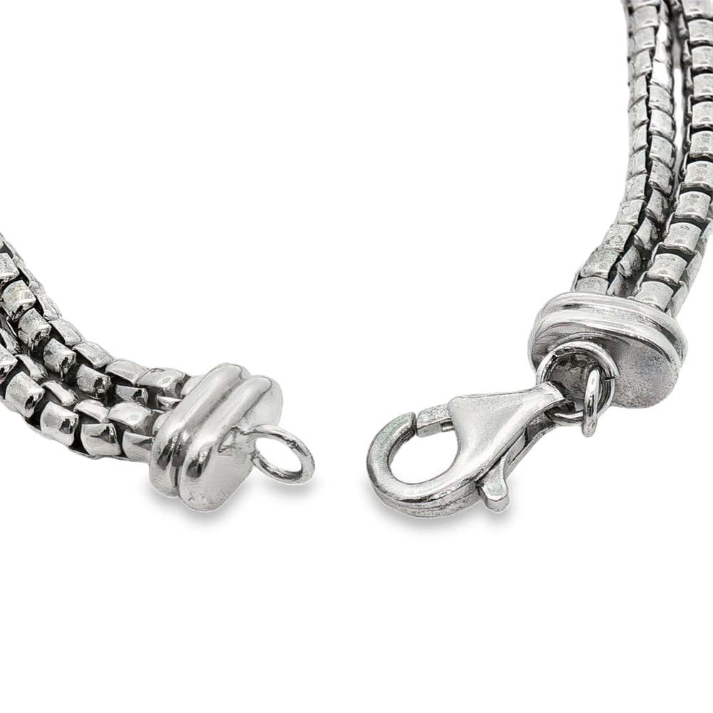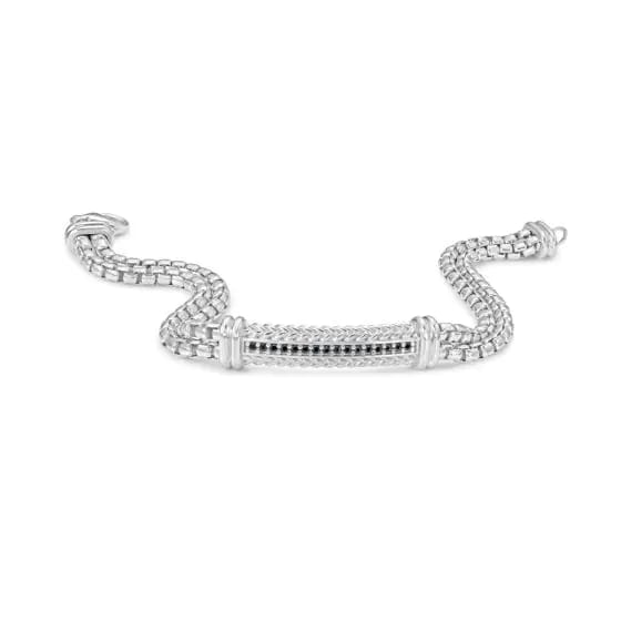 Phillip Gavriel Silver Men’s Box Link Woven with Black Spinel Gemstones Bracelet – 8 Inches