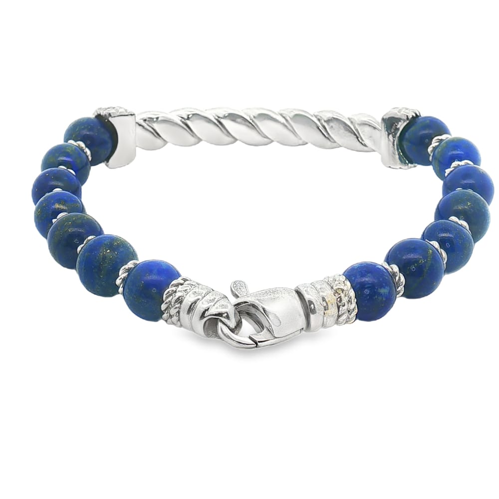 Phillip Gavriel Sterling Silver Men’s Italian Cable Twist Bar 8″ Bracelet with Blue Lapis Beads