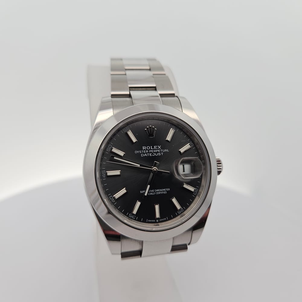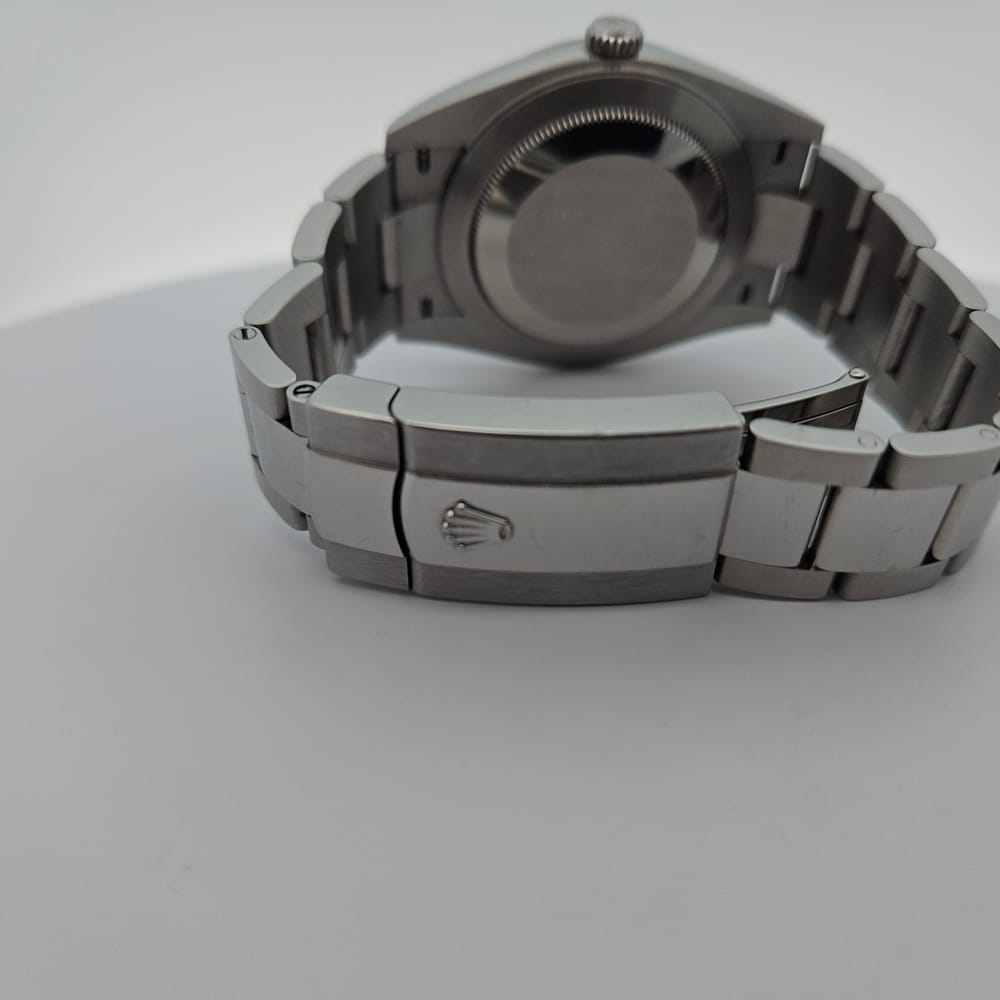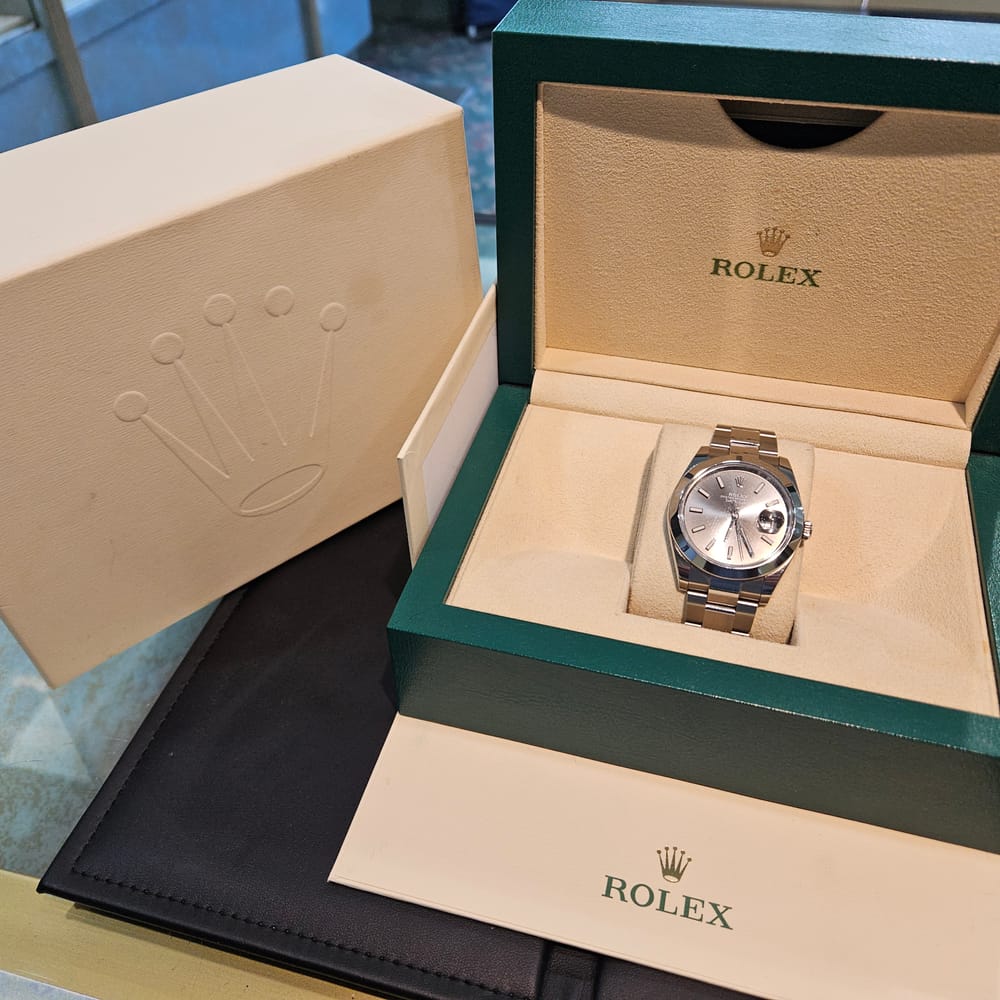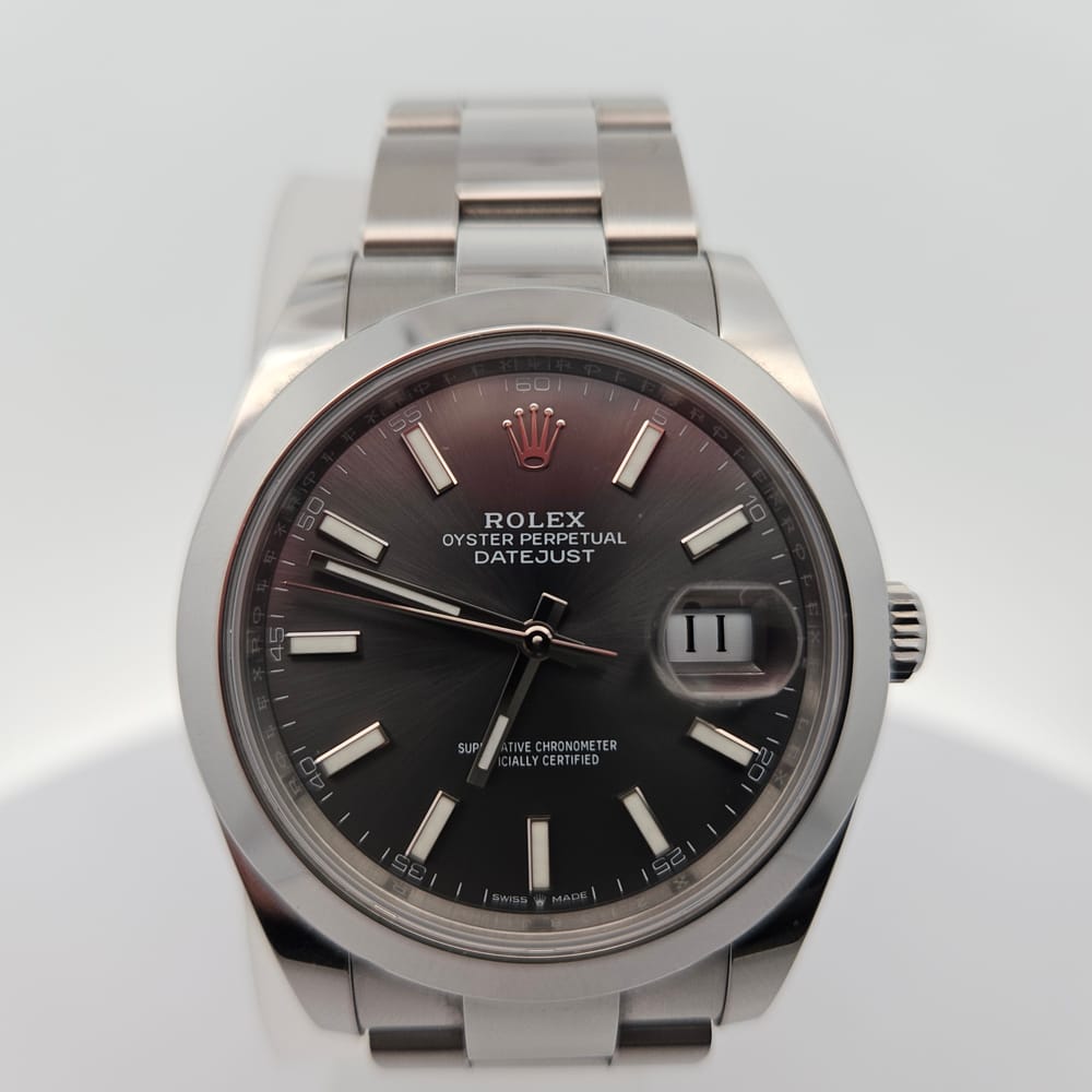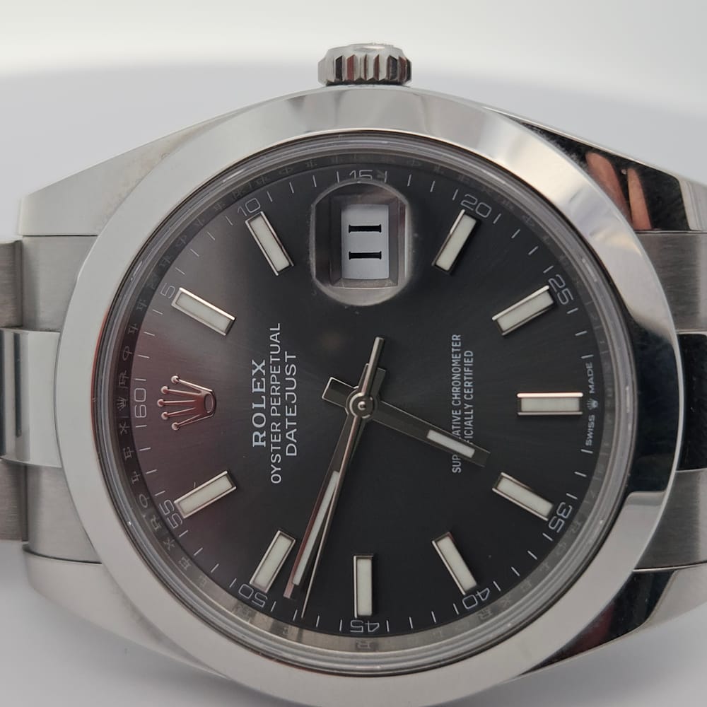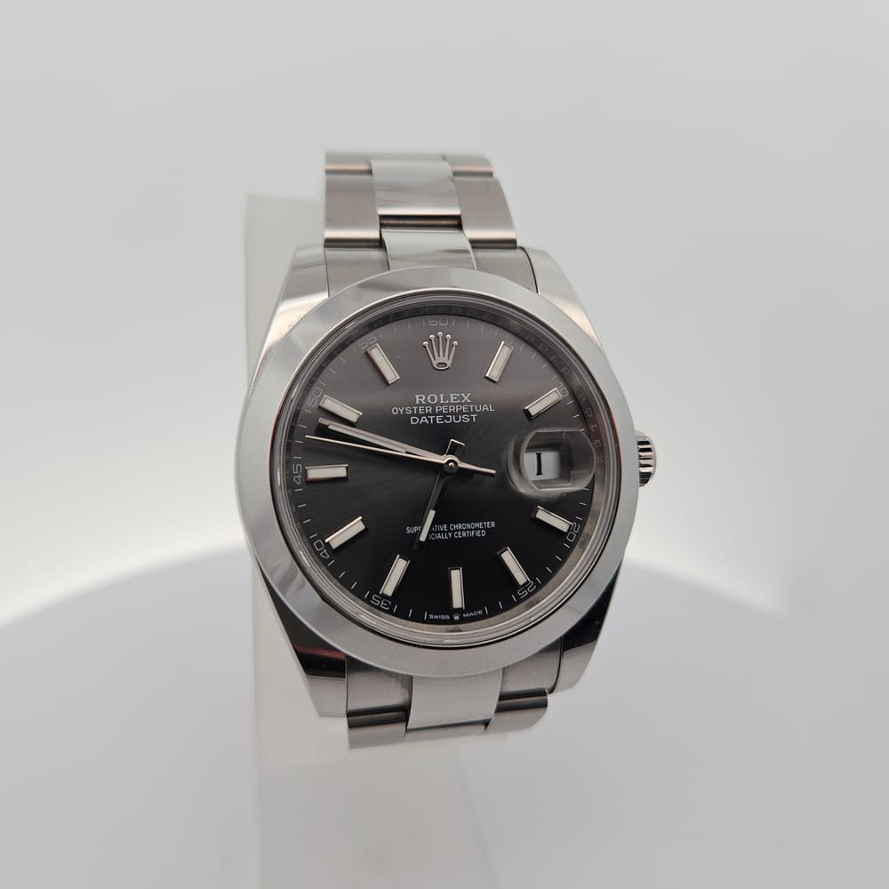 This exquisite pre-owned Rolex Oyster Perpetual Datejust features a sleek 41mm stainless steel case in a captivating silver-tone finish. The elegant gray dial is complemented by a robust stainless steel oyster band, designed for both durability and style. Perfect for men seeking a refined accessory, this automatic timepiece combines luxury and practicality effortlessly.