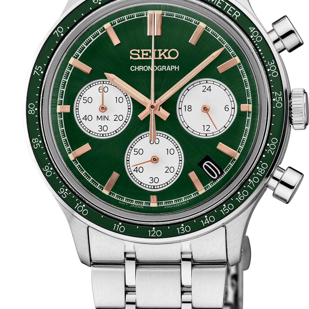 Discover the exquisite craftsmanship of the Seiko Essentials SSB481 watch, designed specifically for the modern man. Its 38mm stainless steel case houses a reliable quartz movement, ensuring precision and durability. The striking green dial paired with a stainless steel strap makes this timepiece a standout accessory for any occasion.
