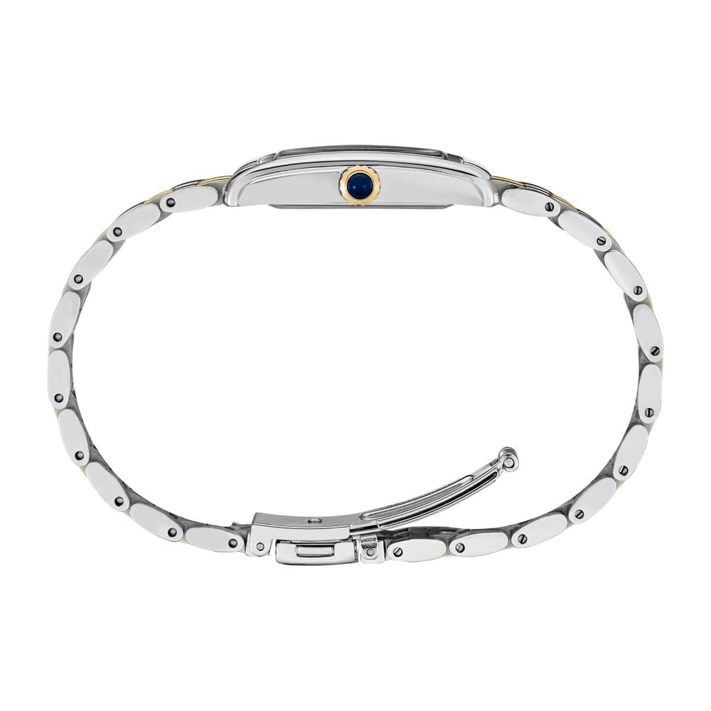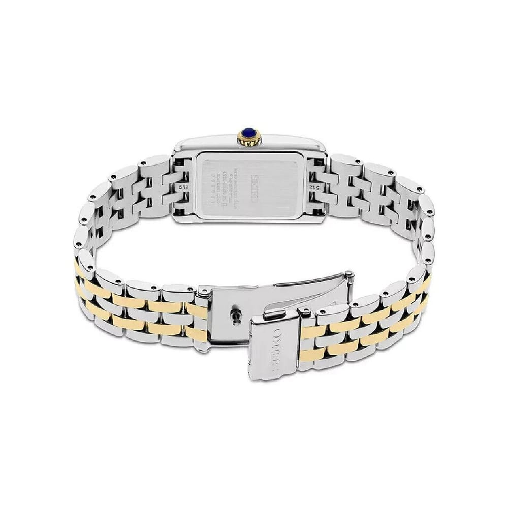 Experience the elegance of the Seiko Essentials watch, crafted with a polished two-tone silver and gold plating that complements its sleek stainless steel case. The sophisticated white textured dial adds a touch of modern allure, making it perfect for any occasion. Powered by a reliable quartz movement, this timepiece combines style and functionality for the contemporary woman.