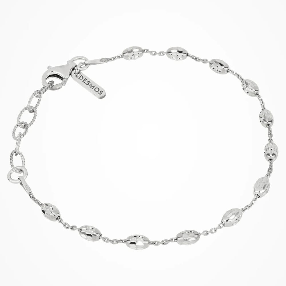 This elegant bracelet is crafted from high-quality .925 silver, offering a refined aesthetic perfect for any occasion. Its slim chain features a series of diamond-cut round elements that catch the light beautifully, adding a touch of sparkle to your ensemble. With a comfortable length of 7.25 inches, this piece is designed to complement the sophisticated women’s style.