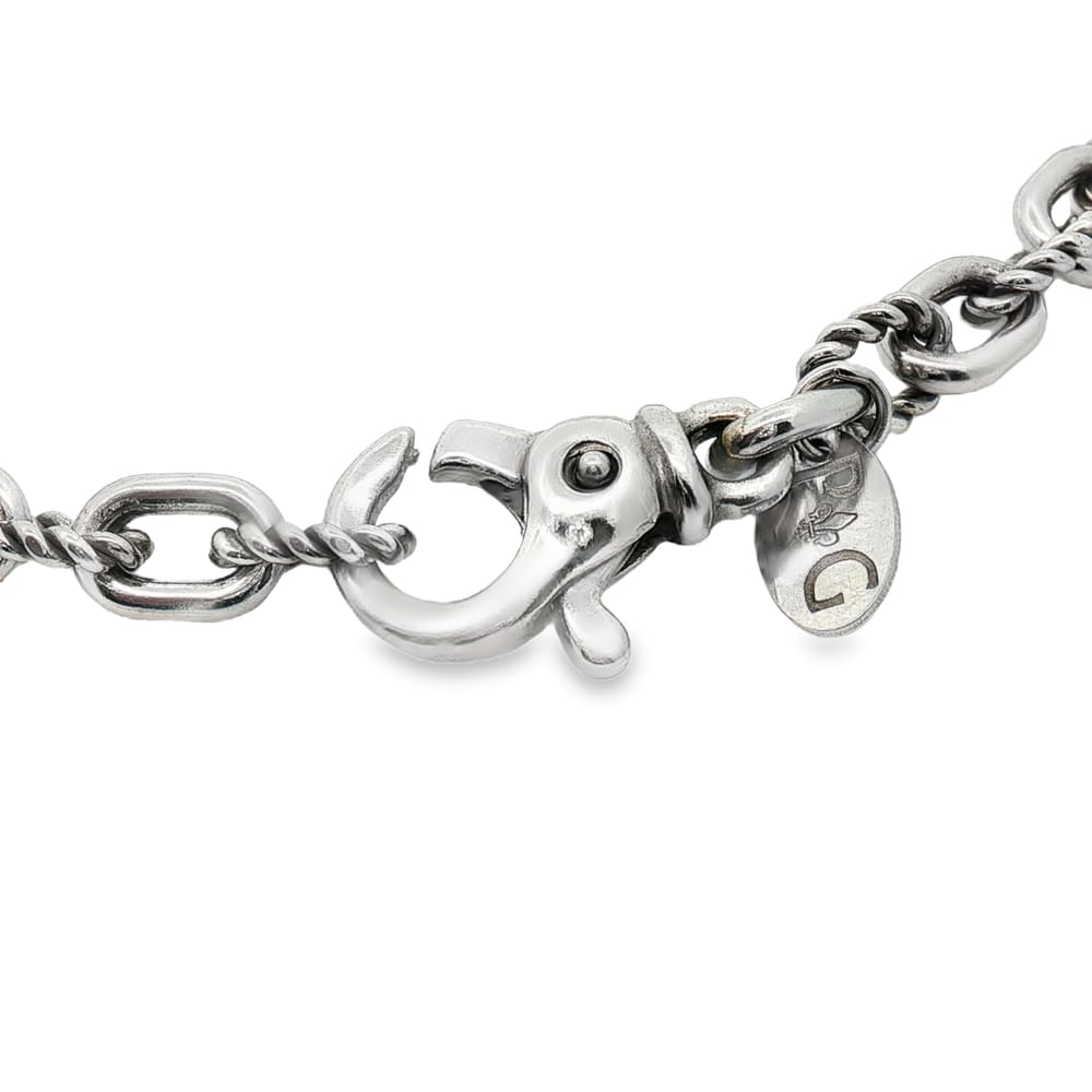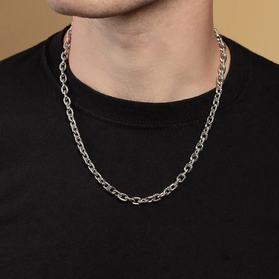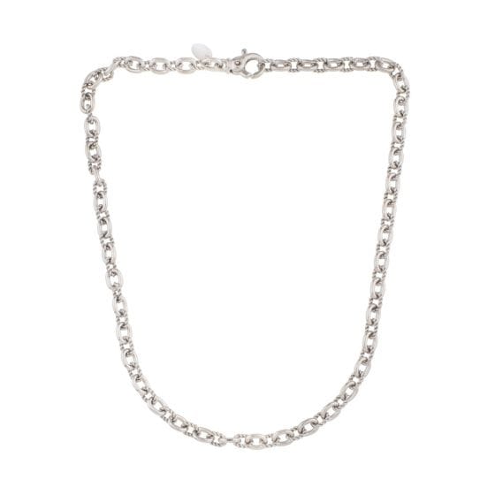 In the city of Rome lies the Via Del Corso, a vital artery of life and culture. This sterling silver chain is also a vital piece to make a part of your collection. This necklace is made in Italy, with each link is constructed by our artisans by hand, with polished and twisted links inspired by our Italian Cable series. A rhodium finish is added for high shine and to prevent tarnishing. Wear it alone or stack it with other pieces in any metal to create your own unique look.